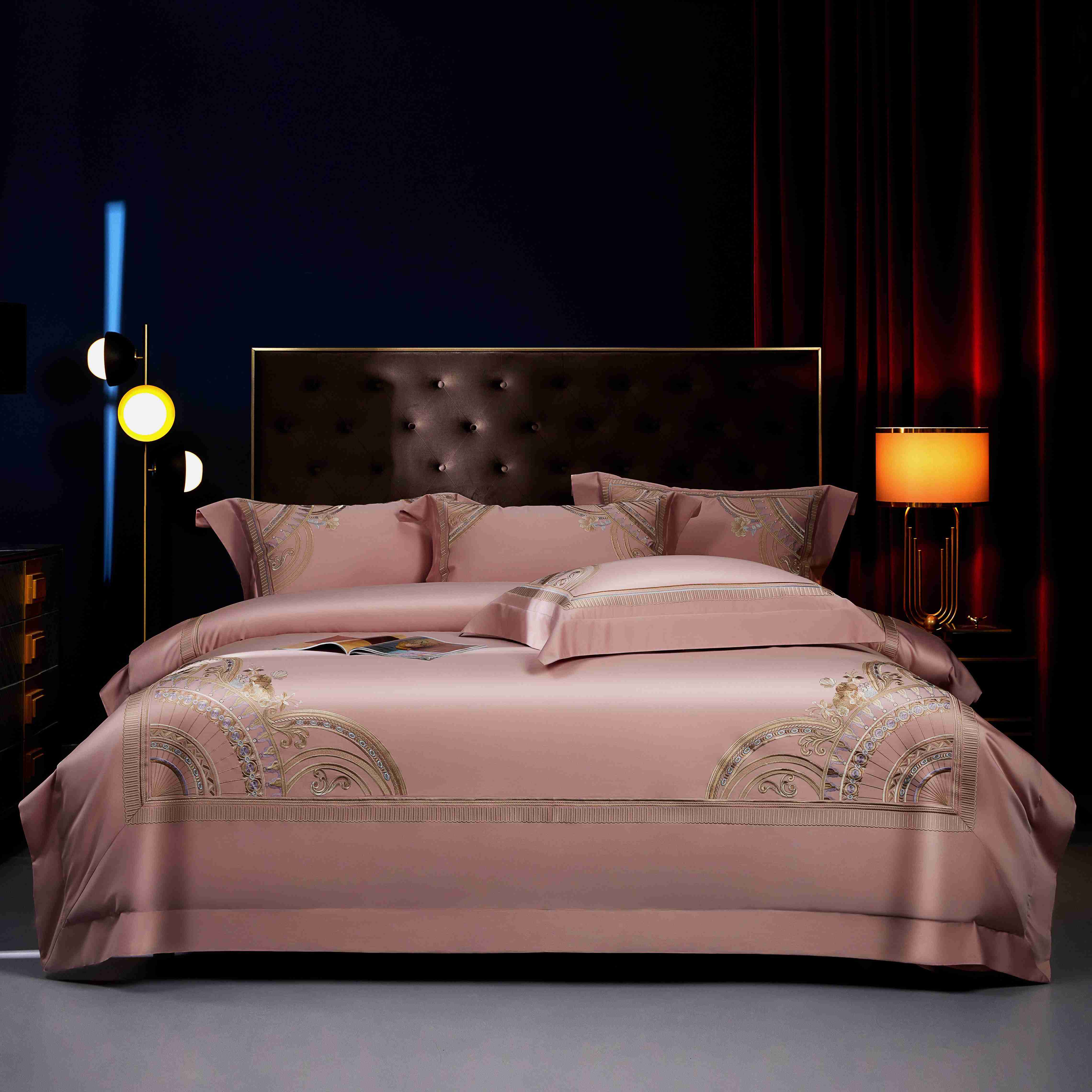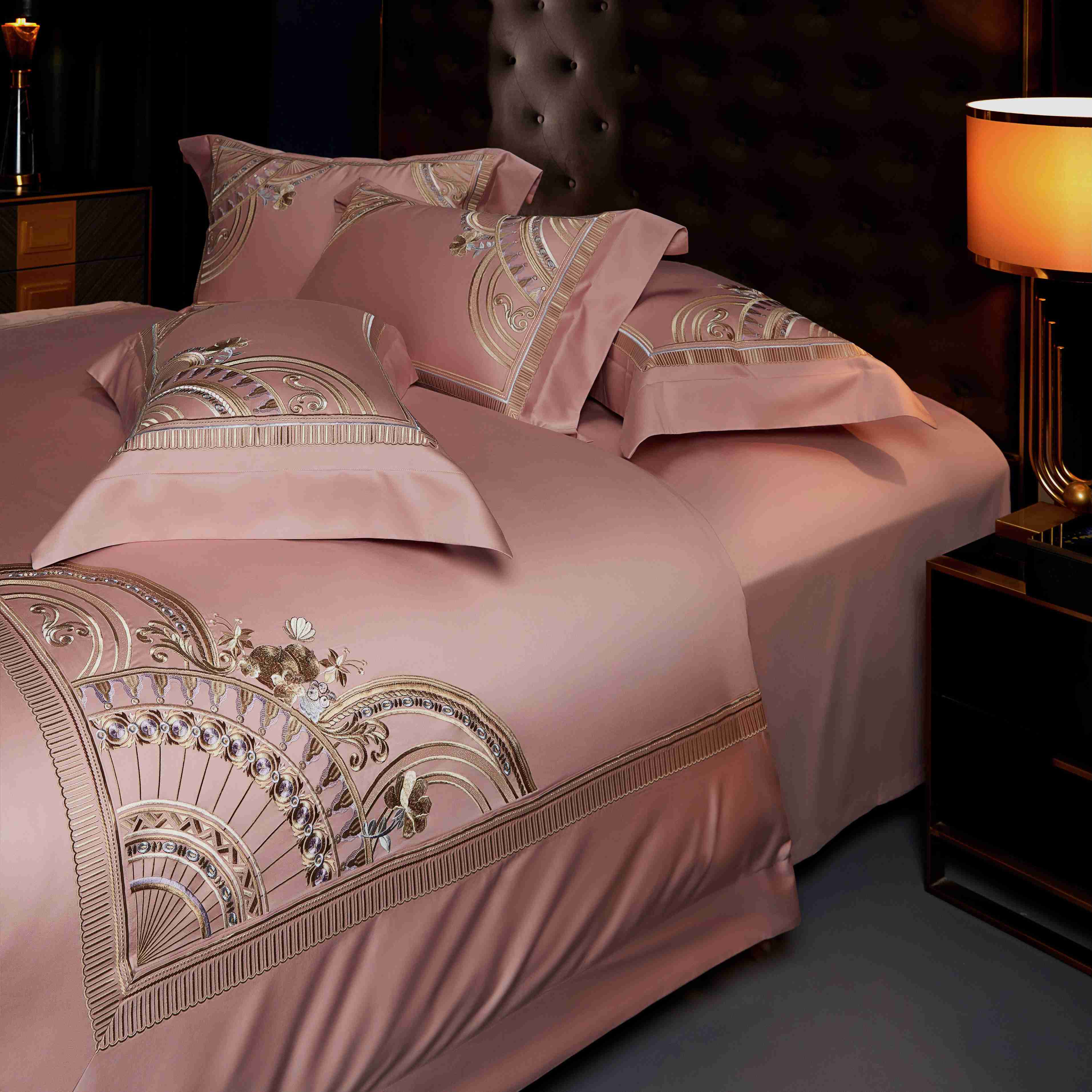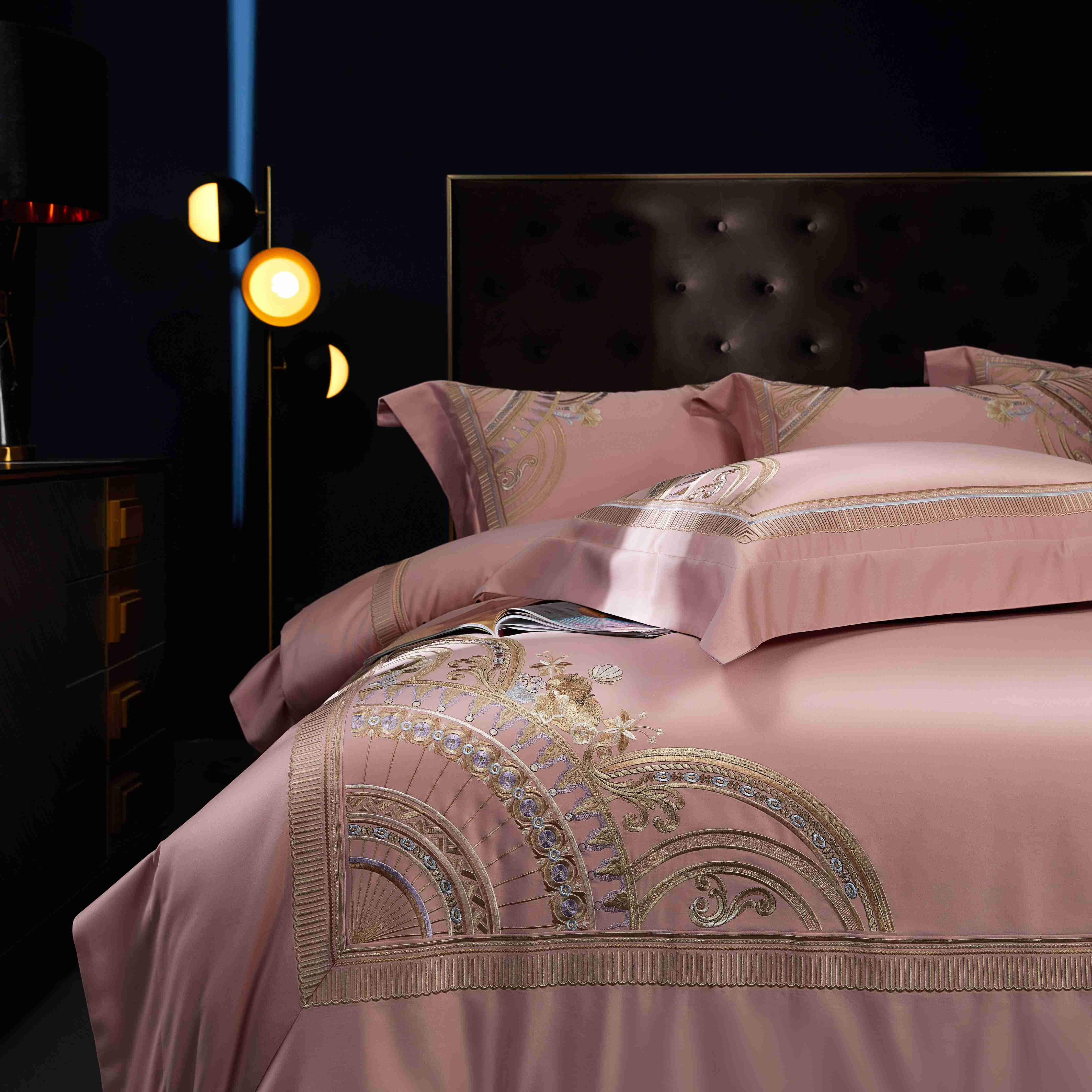 2025新款高端定织面料S140长绒棉精梳棉重磅刺绣四件套巴赫系列 巴赫 玉粉
