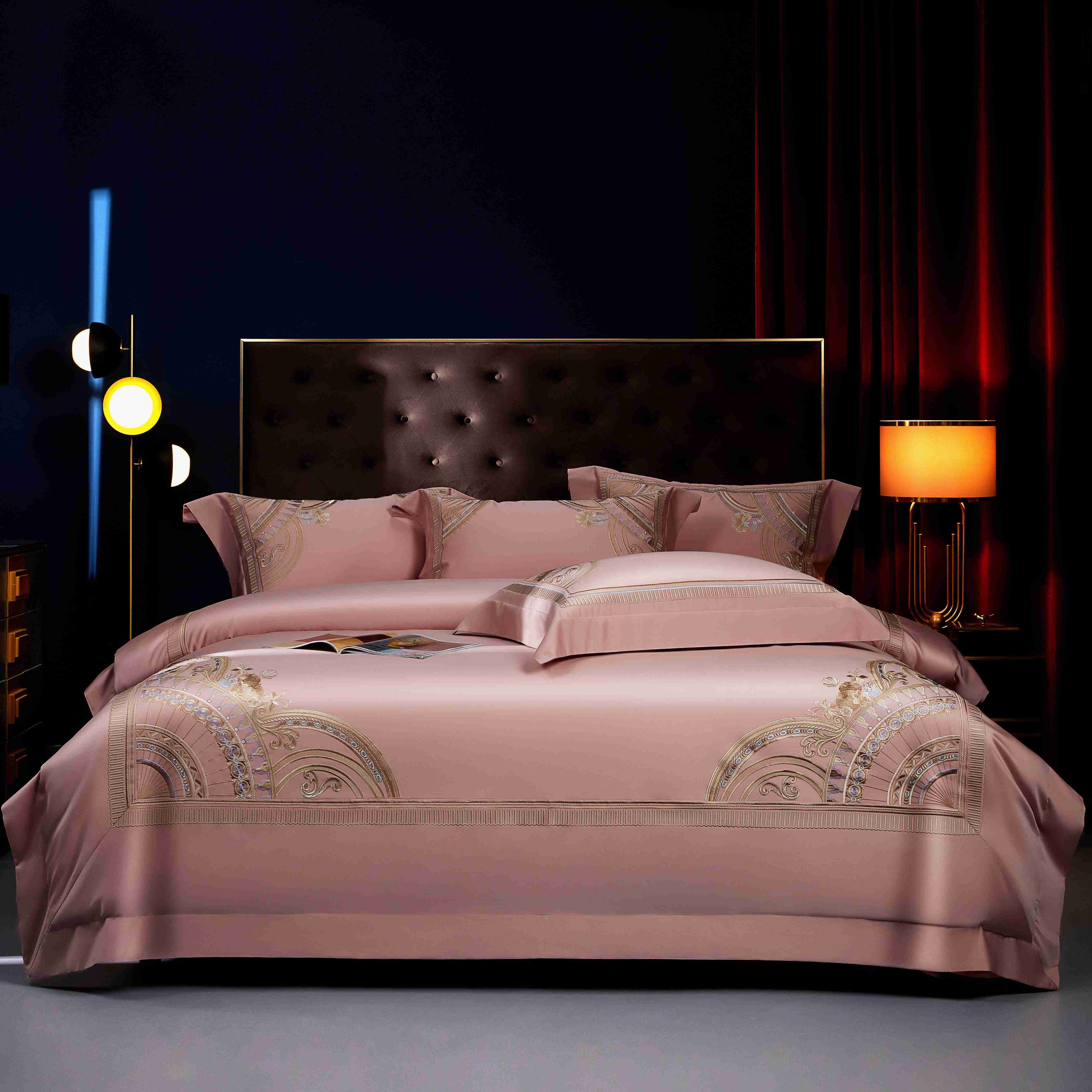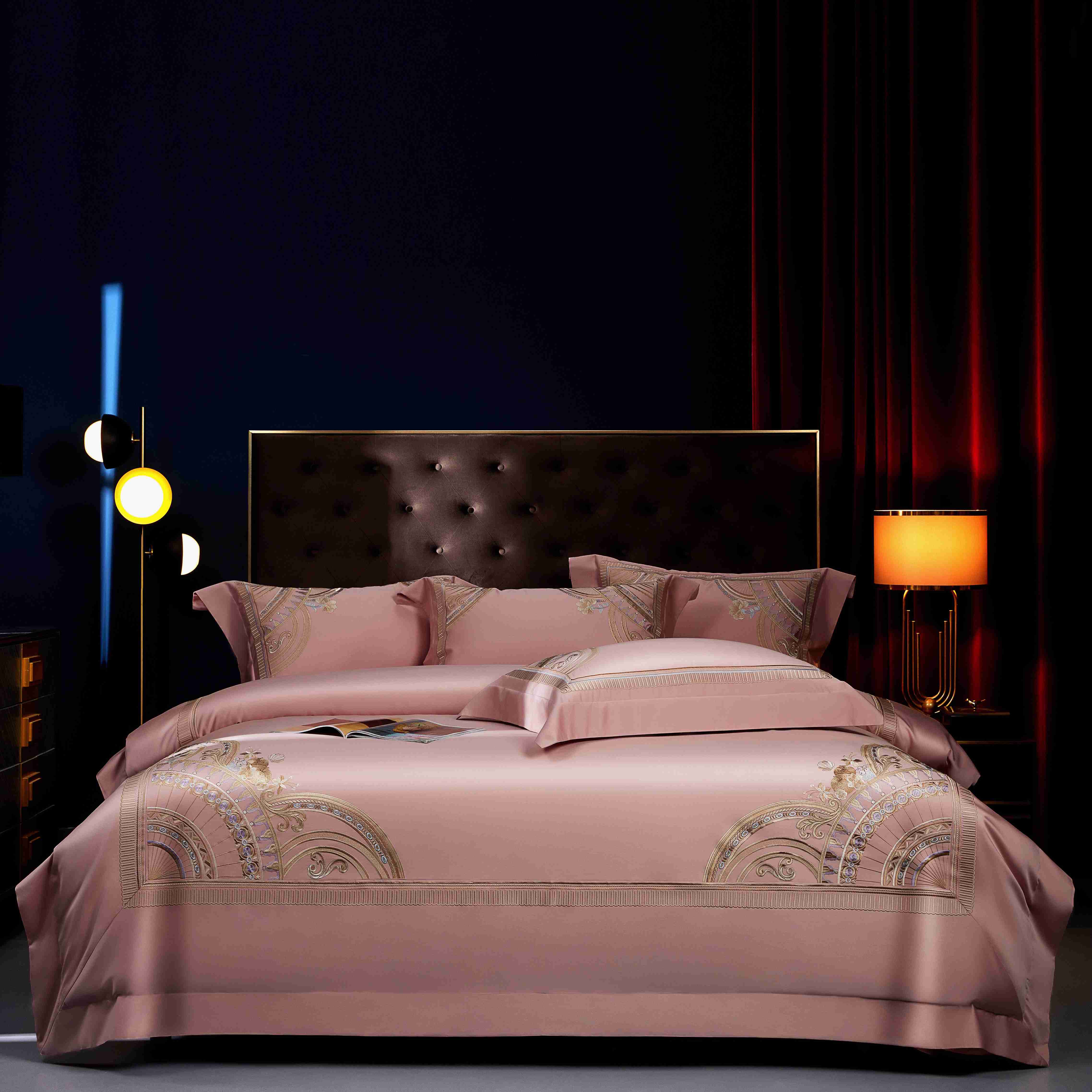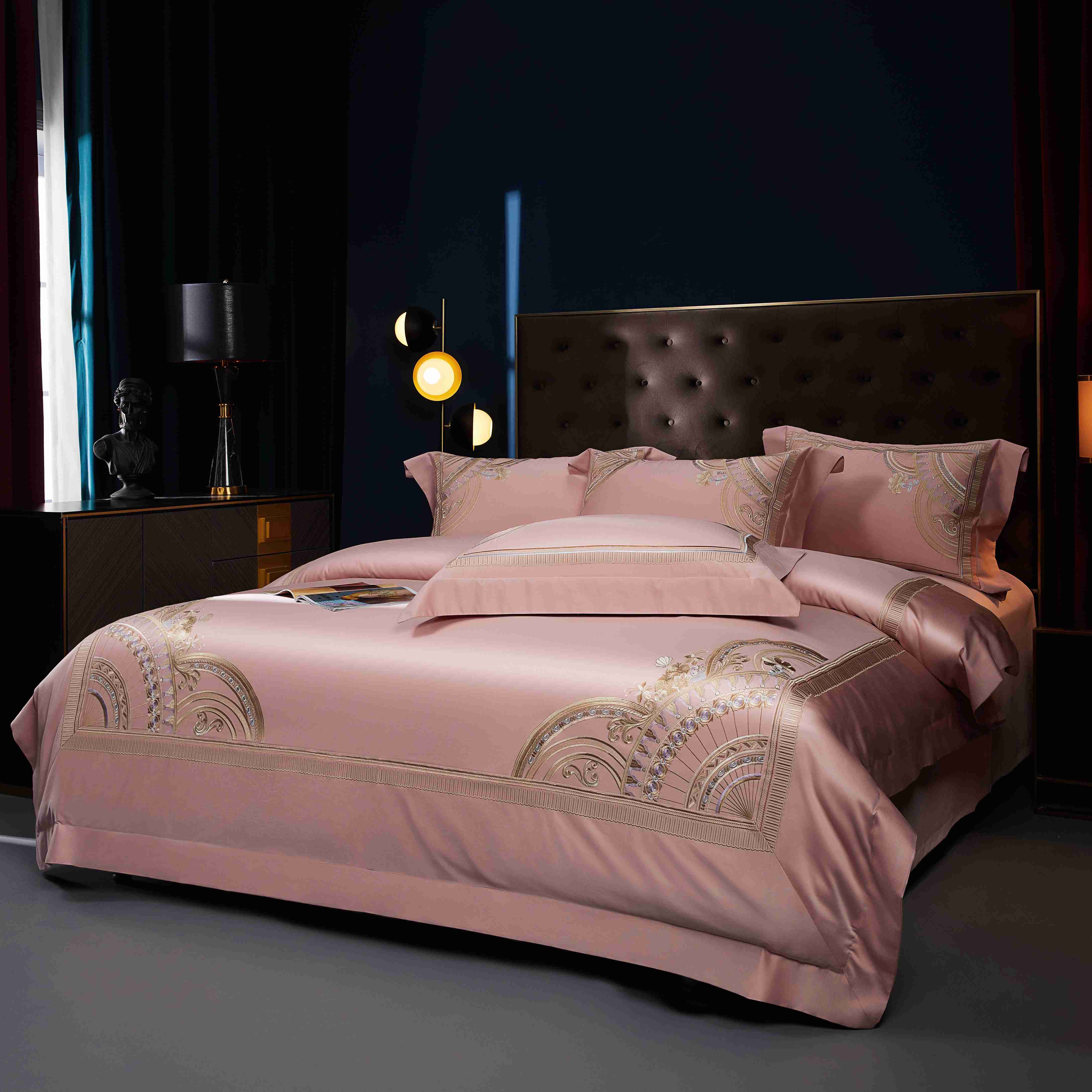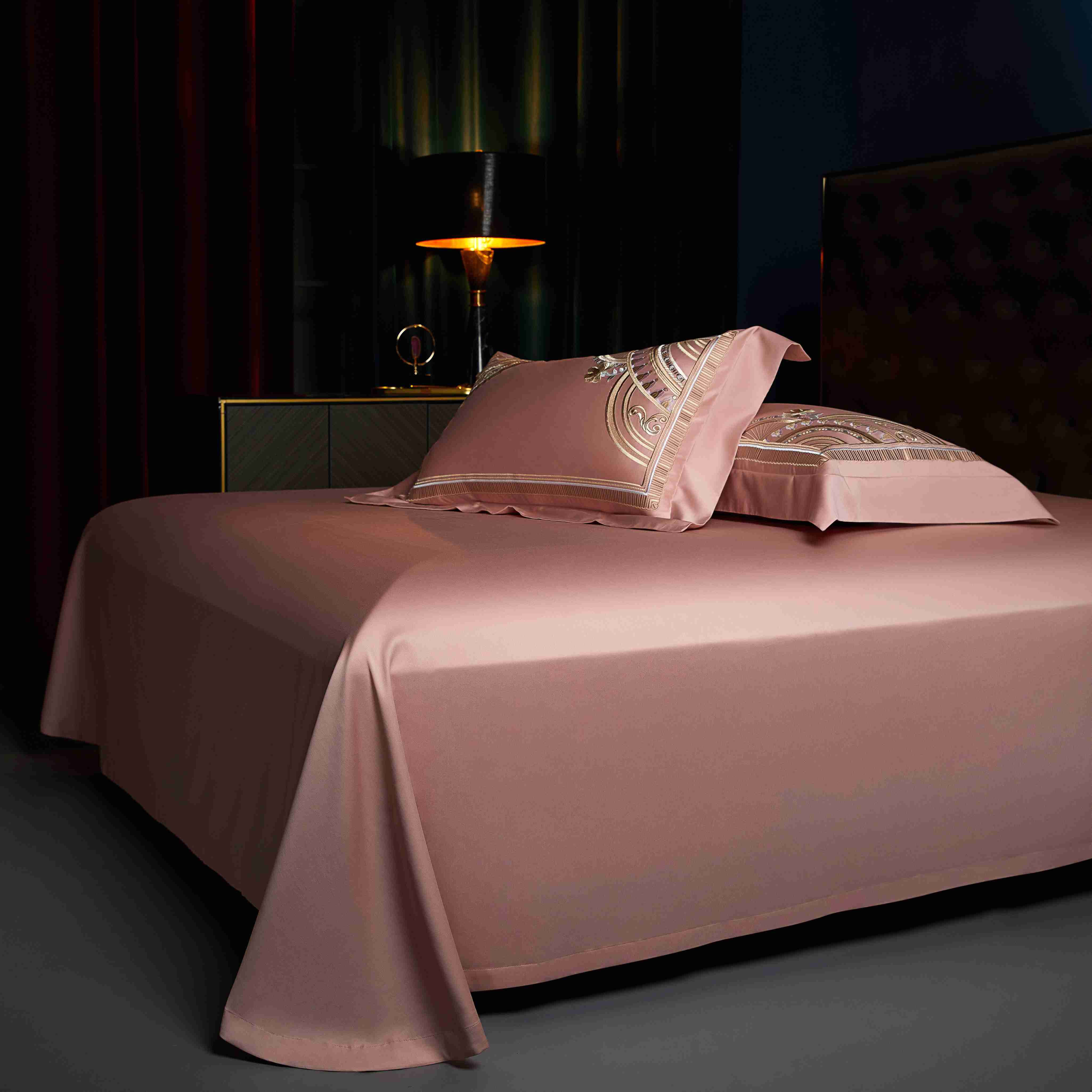 2025新款高端定织面料S140长绒棉精梳棉重磅刺绣四件套巴赫系列 巴赫 玉粉