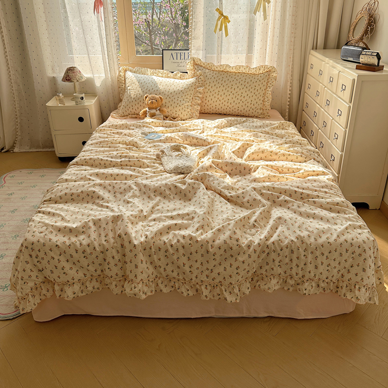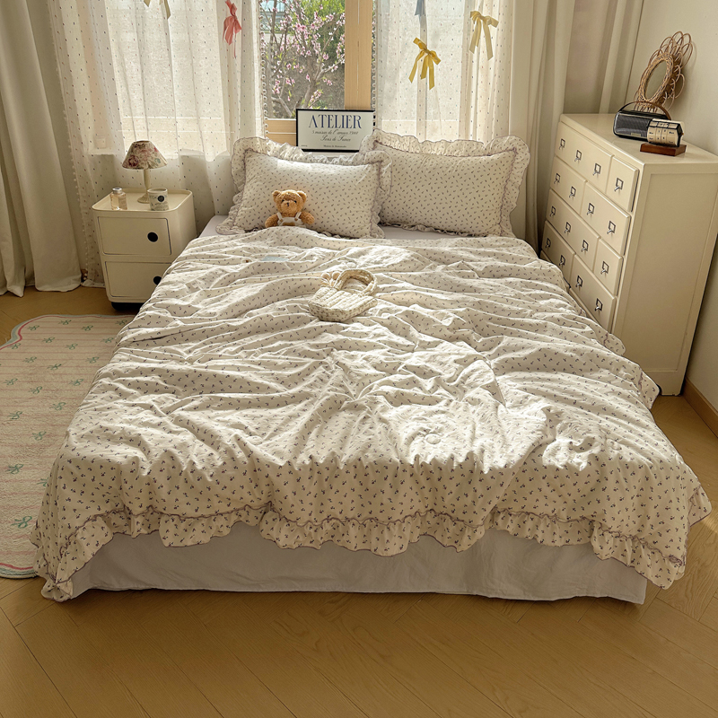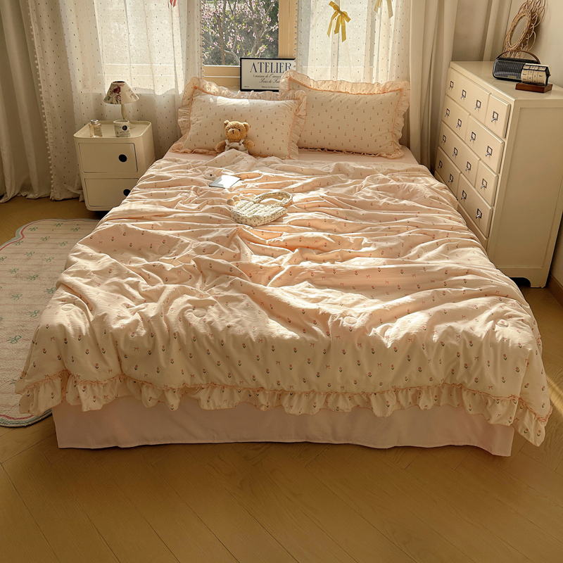 轻奢坊 2025新款水洗棉密拷花边夏被夏凉被空调被四件套 清然
