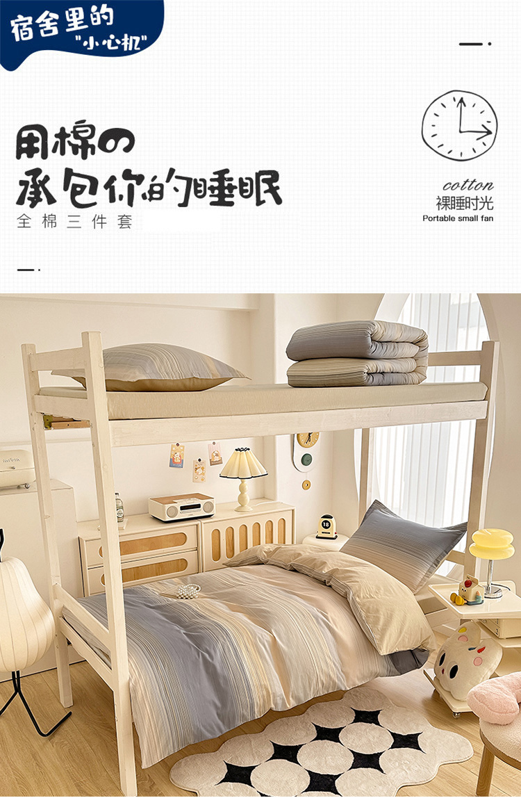商品名称:卡普 2025新款爆款加厚卡通小清新全棉纯棉学生宿舍三件套床笠隔天可拿网络时代