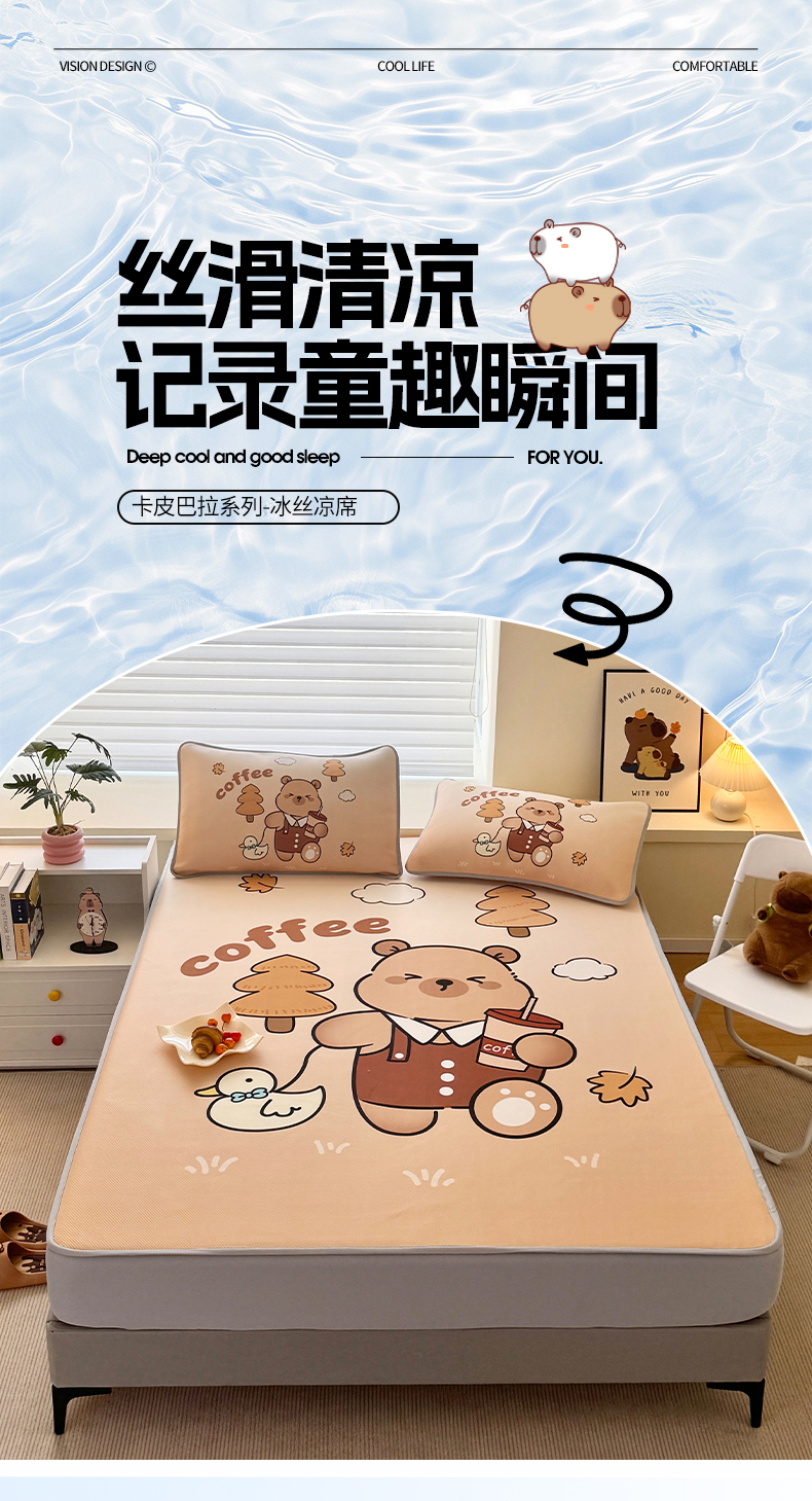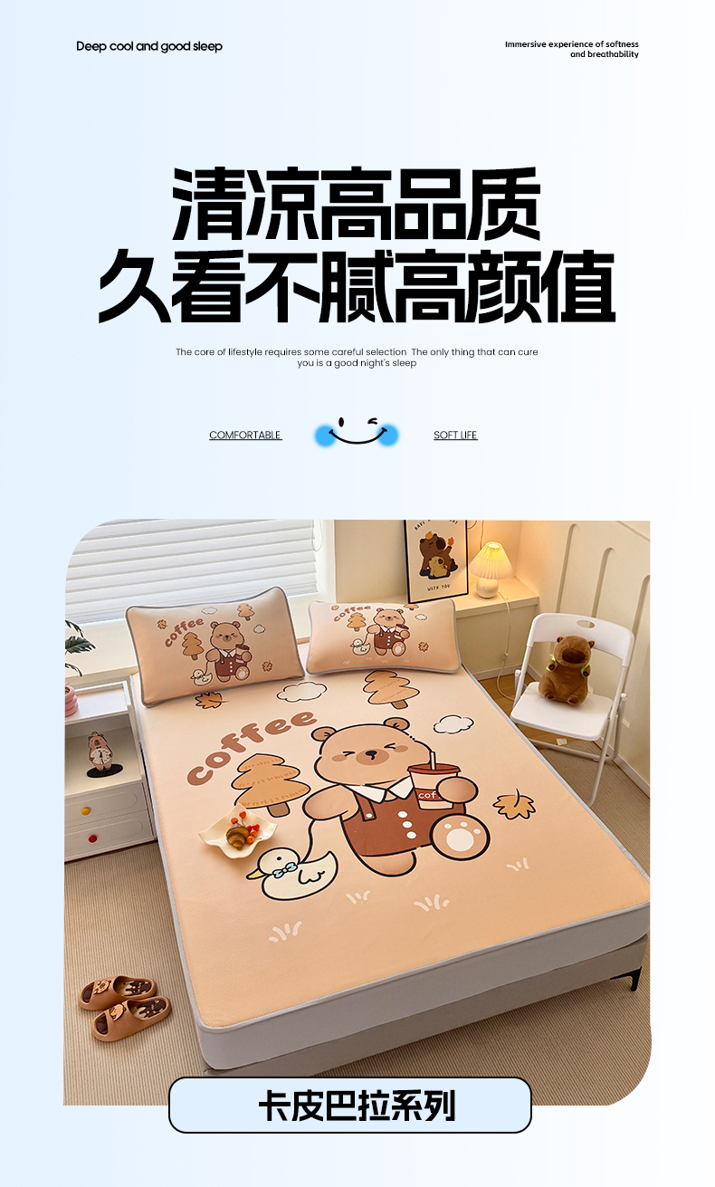 • 91家纺网 家纺一手货源 找家纺 蘭菲家纺 2025新款凉感丝卡皮巴拉凉席 拉小鸭