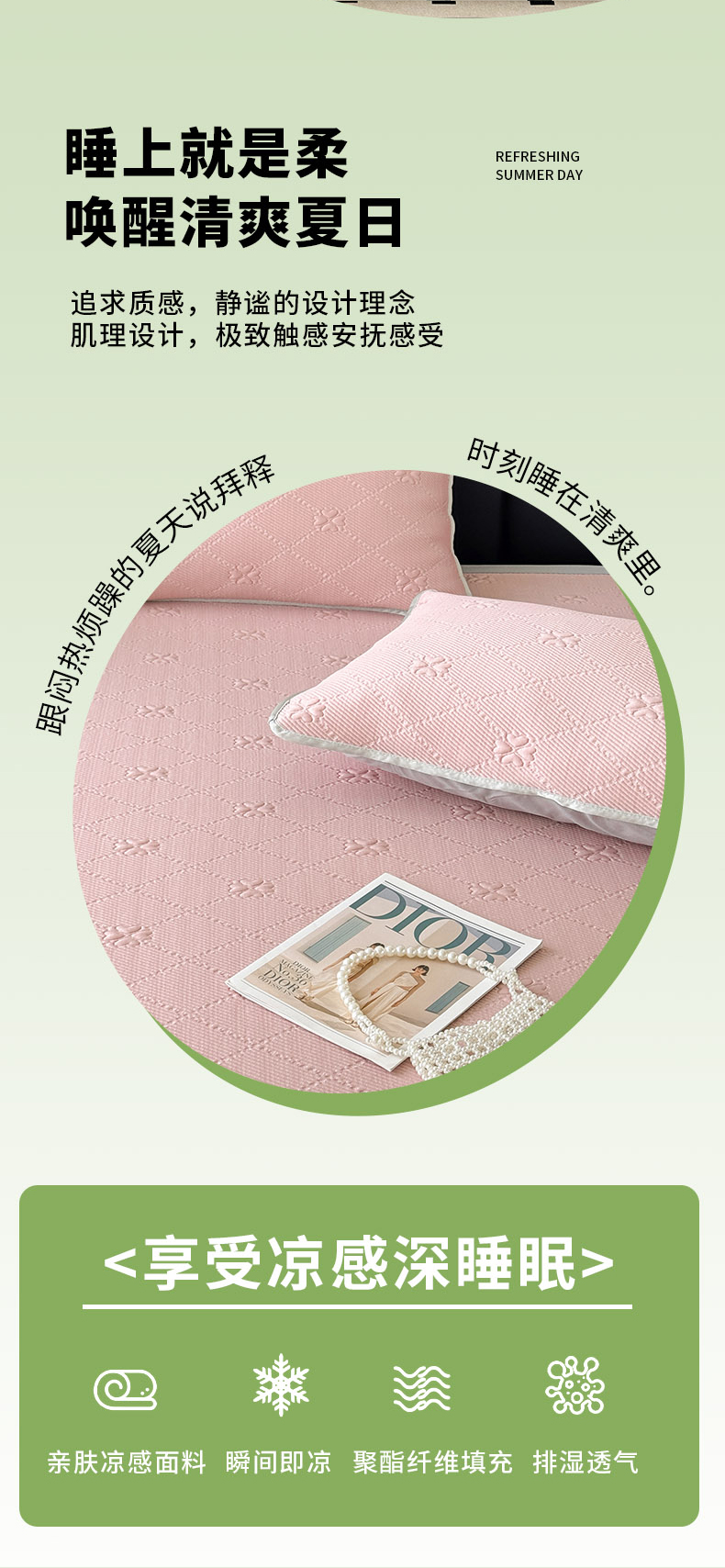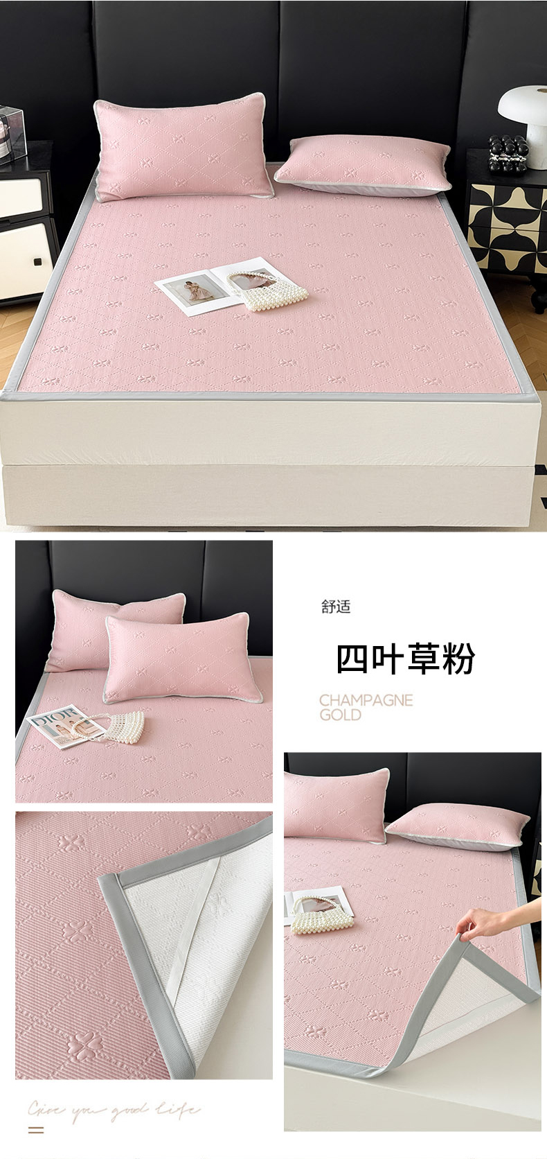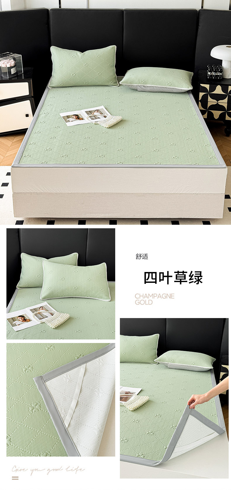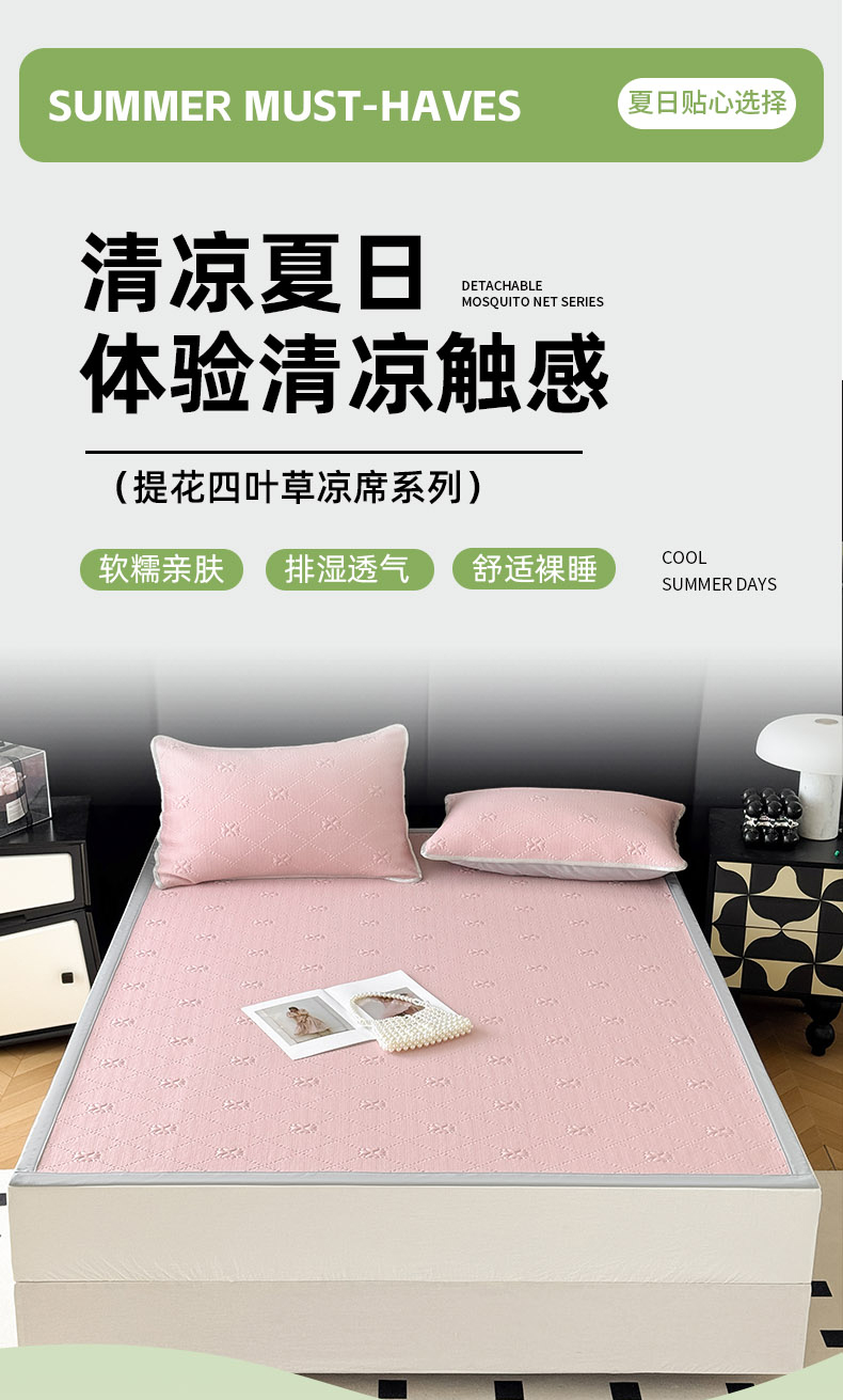 (总)吉祥家纺 2025新款提花四叶草凉席床笠款,四叶草粉,四叶草黄,四叶草灰,四叶草蓝,四叶草绿