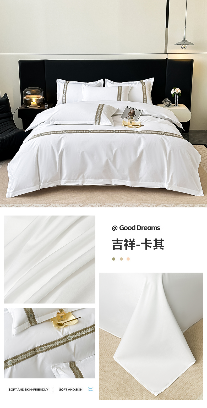 当前位置: 91家纺网 > 商品网购 > 床品套件 > 四件套 > 普通磨毛四件套 > 梦庭帛美 2025新款宾馆刺绣四件套 吉祥-卡其