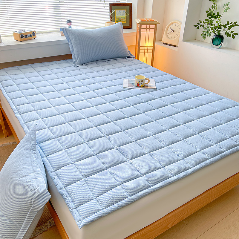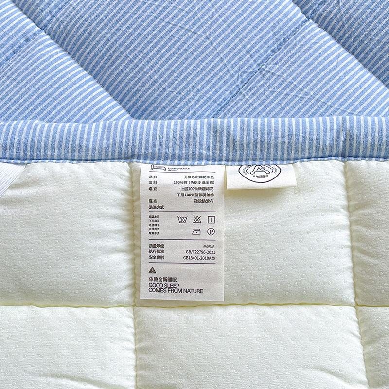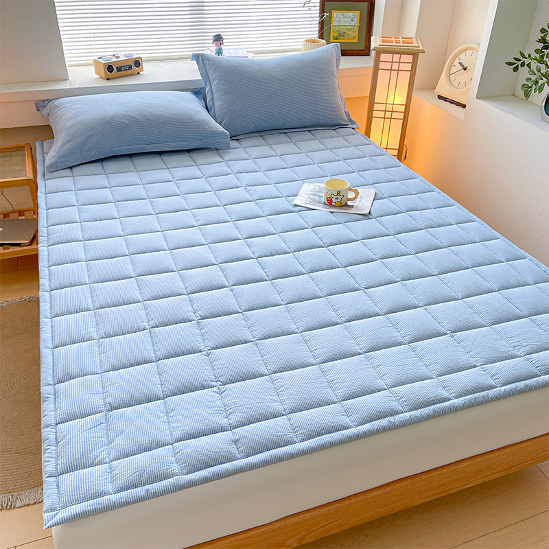 • 91家纺网 家纺一手货源 找家纺 丽诺床垫 2025新款亲肤舒适全棉纯棉色织棉花床褥床垫 细条蓝