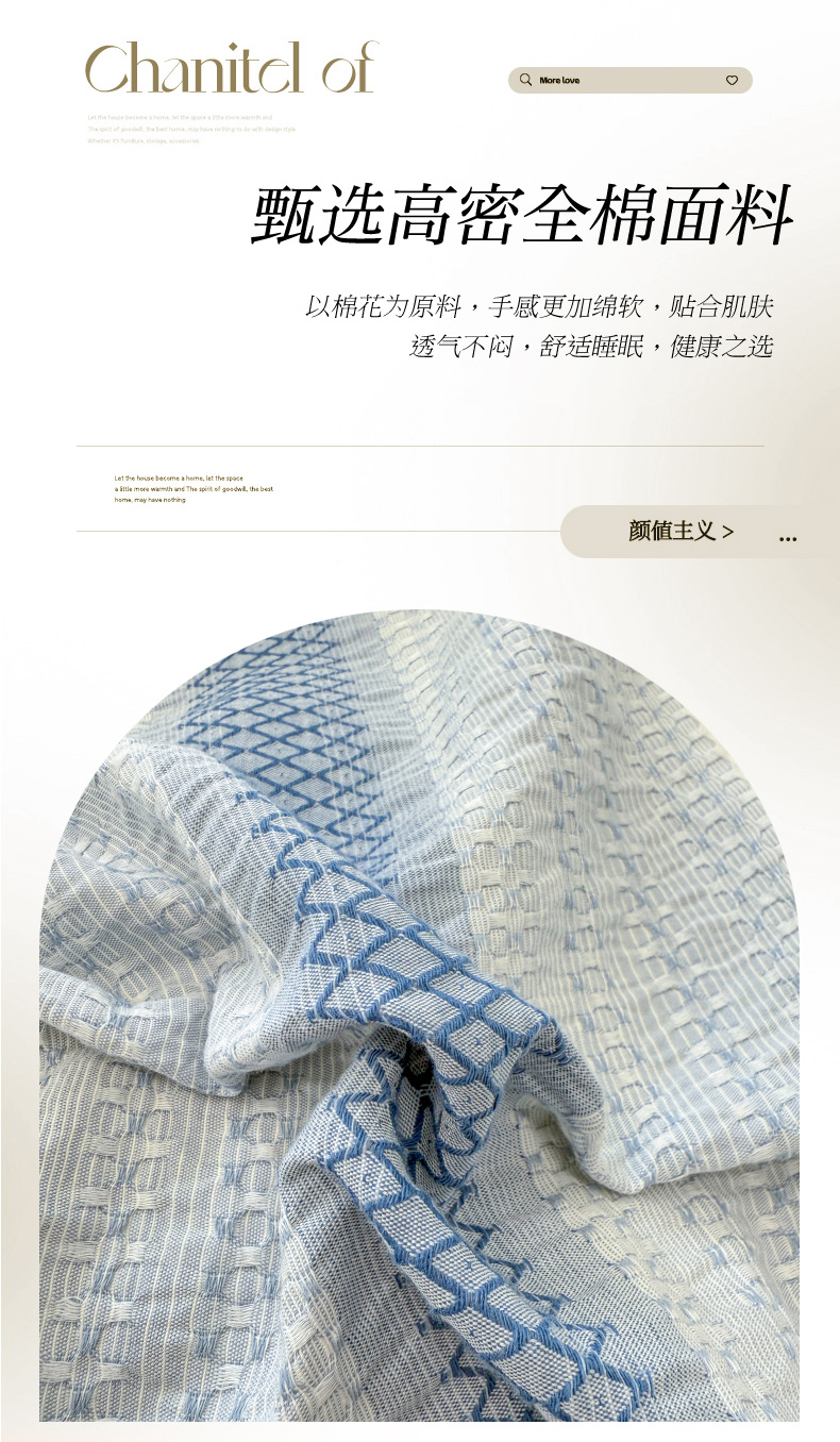 商品名称:(总)米可2025春夏新款A类色织华夫格提花全棉四件套