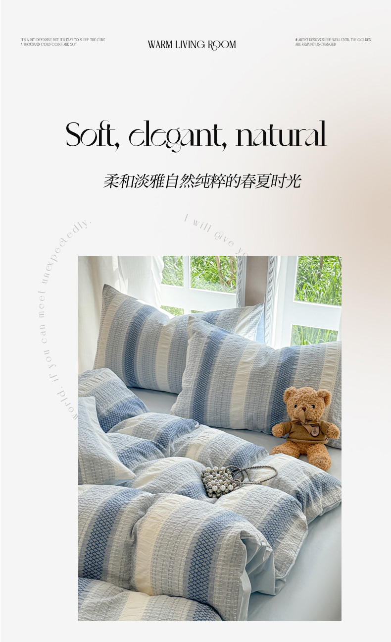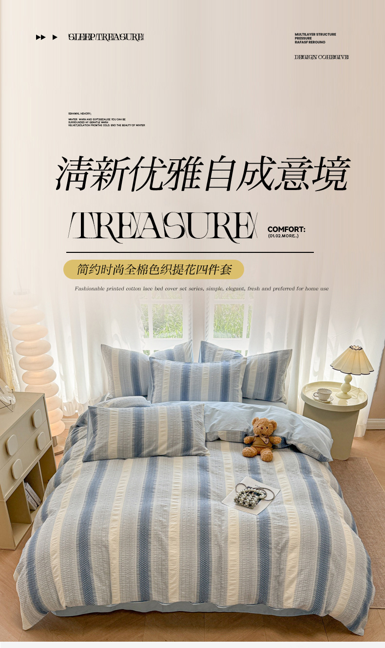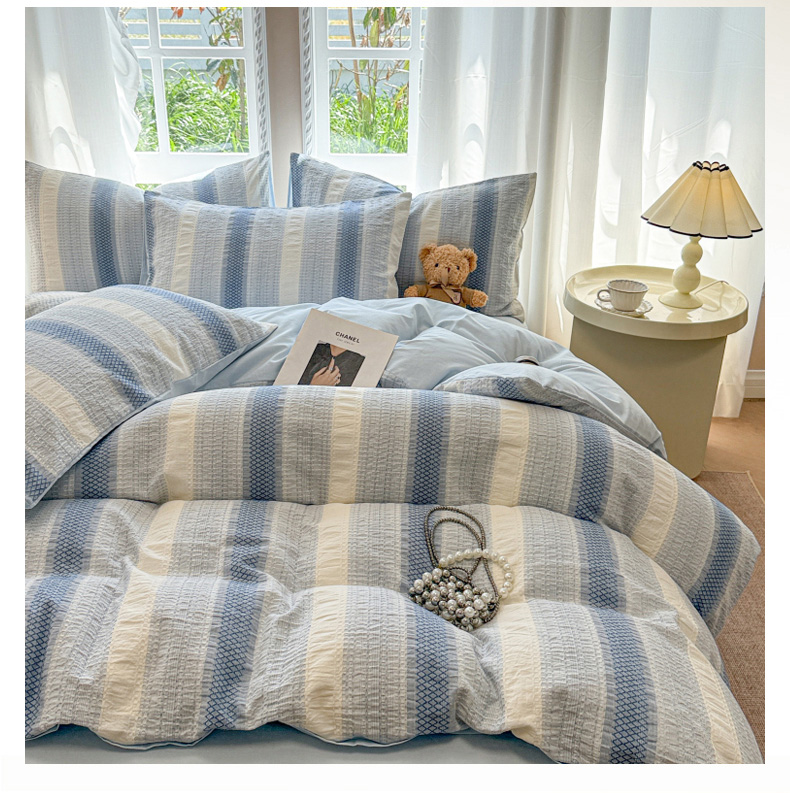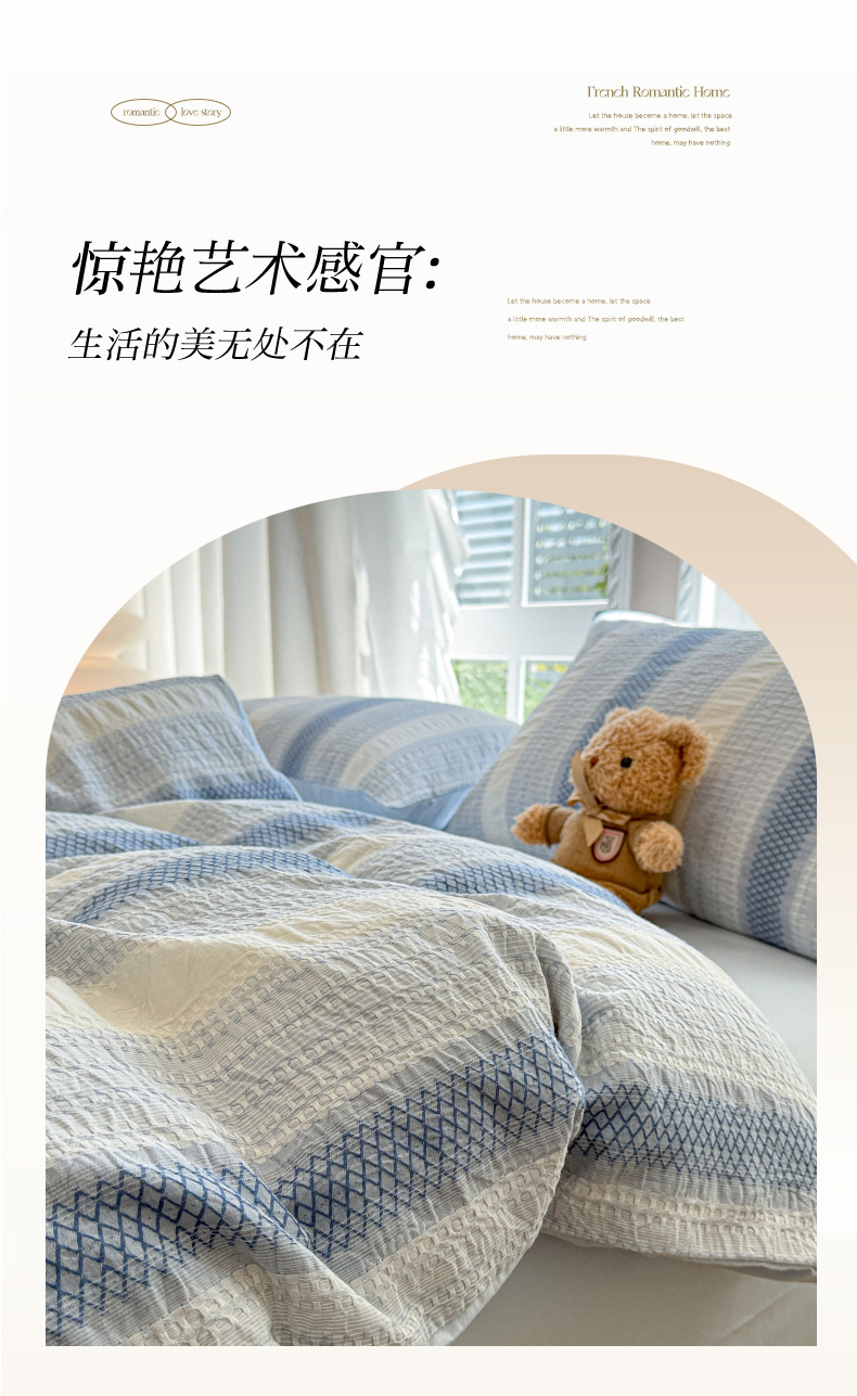 (总)米可2025春夏新款A类色织华夫格提花全棉四件套