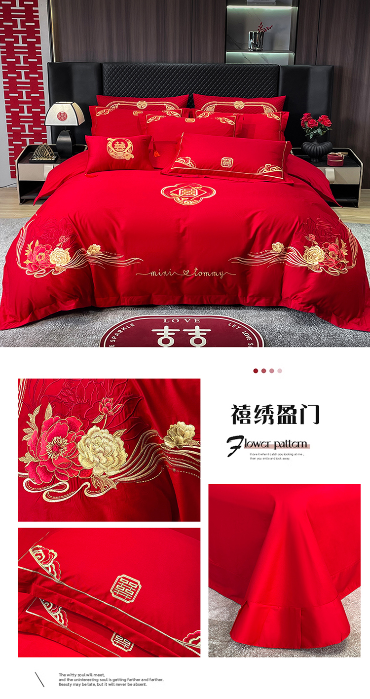 商品名称:张公子婚庆馆2025新款长绒棉新中式精美刺绣婚庆四件套(控价不低于328)