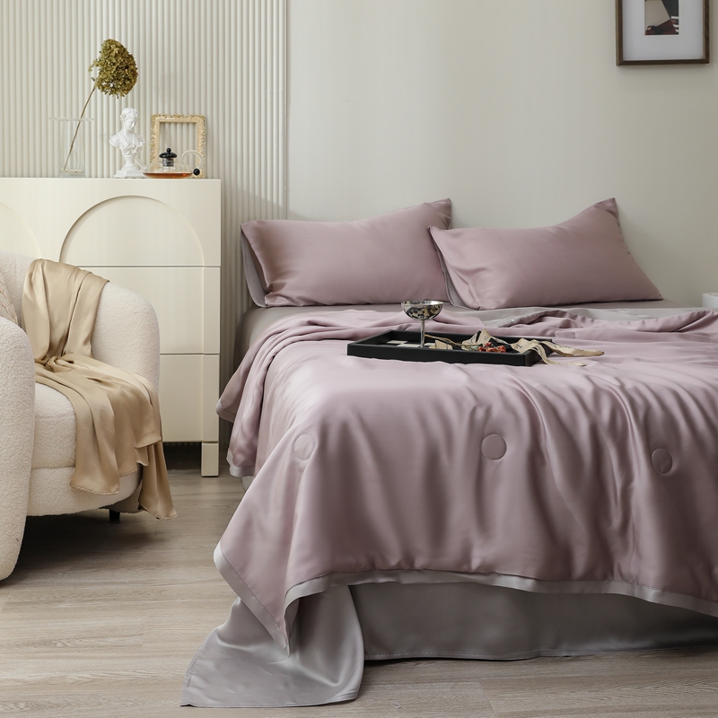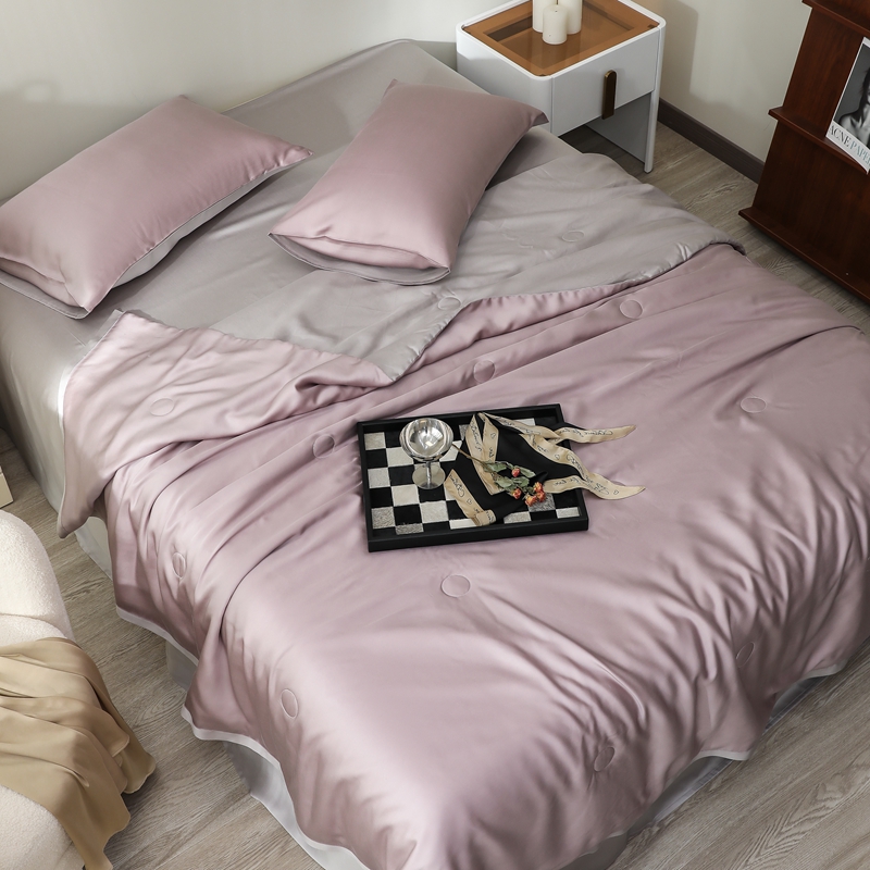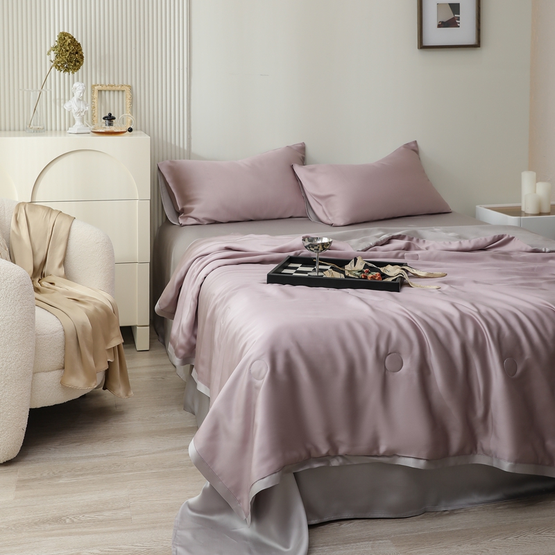 当前位置: 91家纺网 > 商品网购 > 床品套件 > 四件套 > 夏被四件套 > 眷恋家纺 2025春夏新款双拼纯色60天丝夏被四件套 满天星紫-曙光银