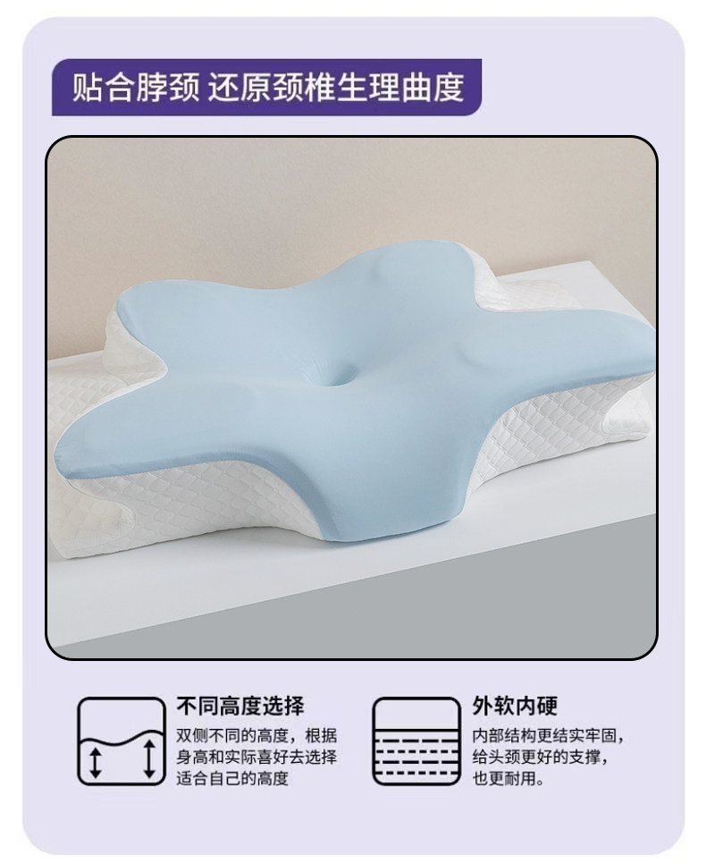 商品名称:枕芯真意 2025新款蝶形护颈记忆牛角枕枕头枕芯 牛角枕-魅紫色