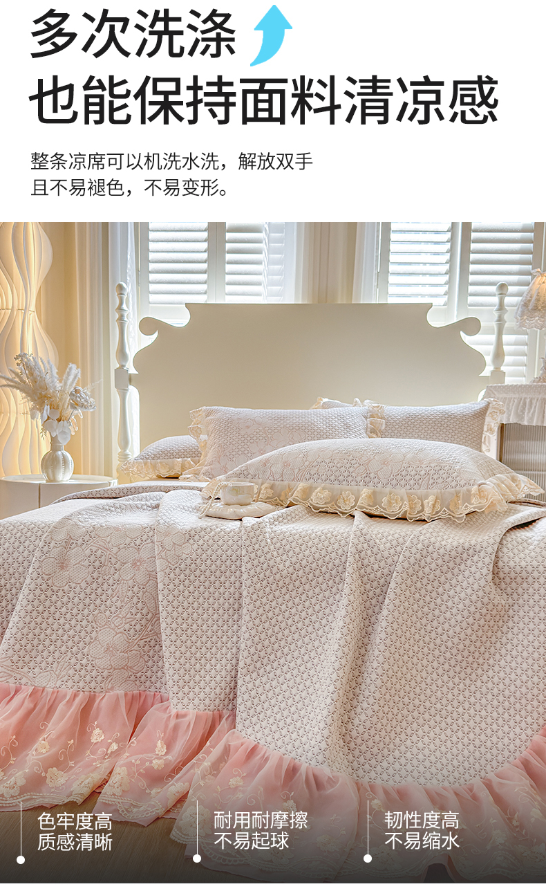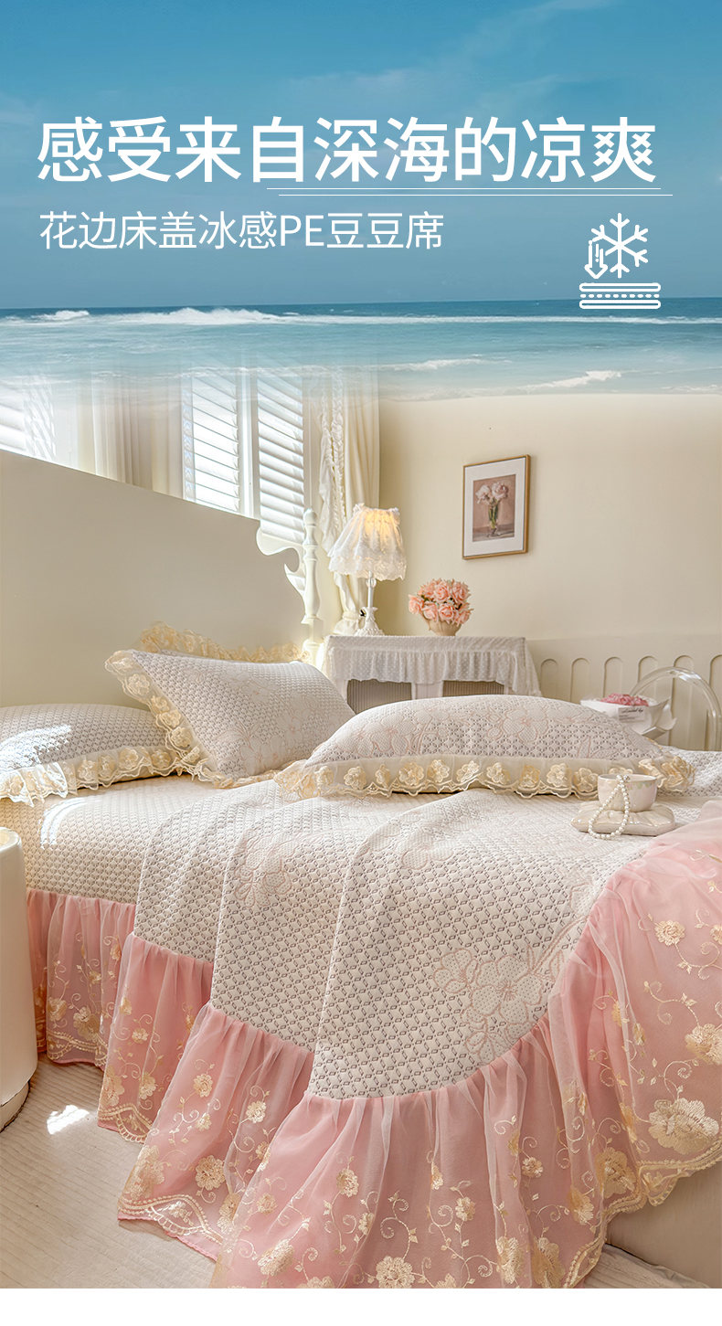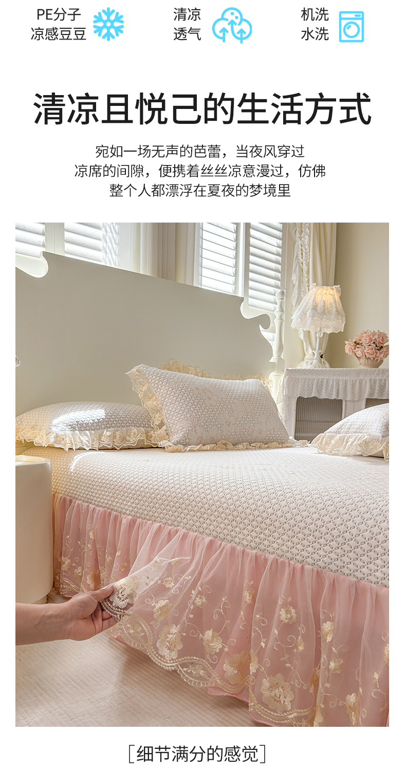 商品名称:网红馆(ck家纺) 2025新款PE冰席床盖三件套 粉