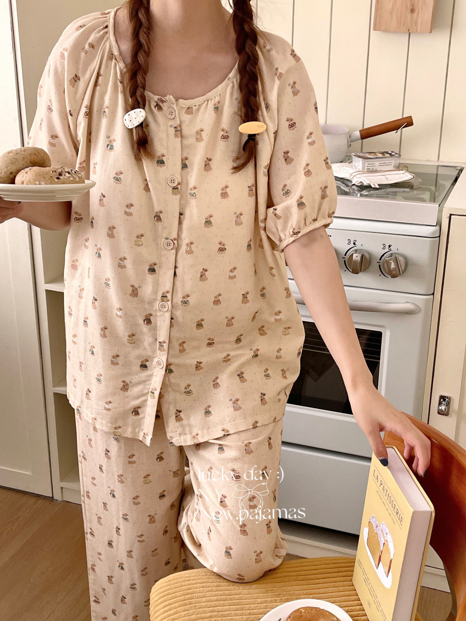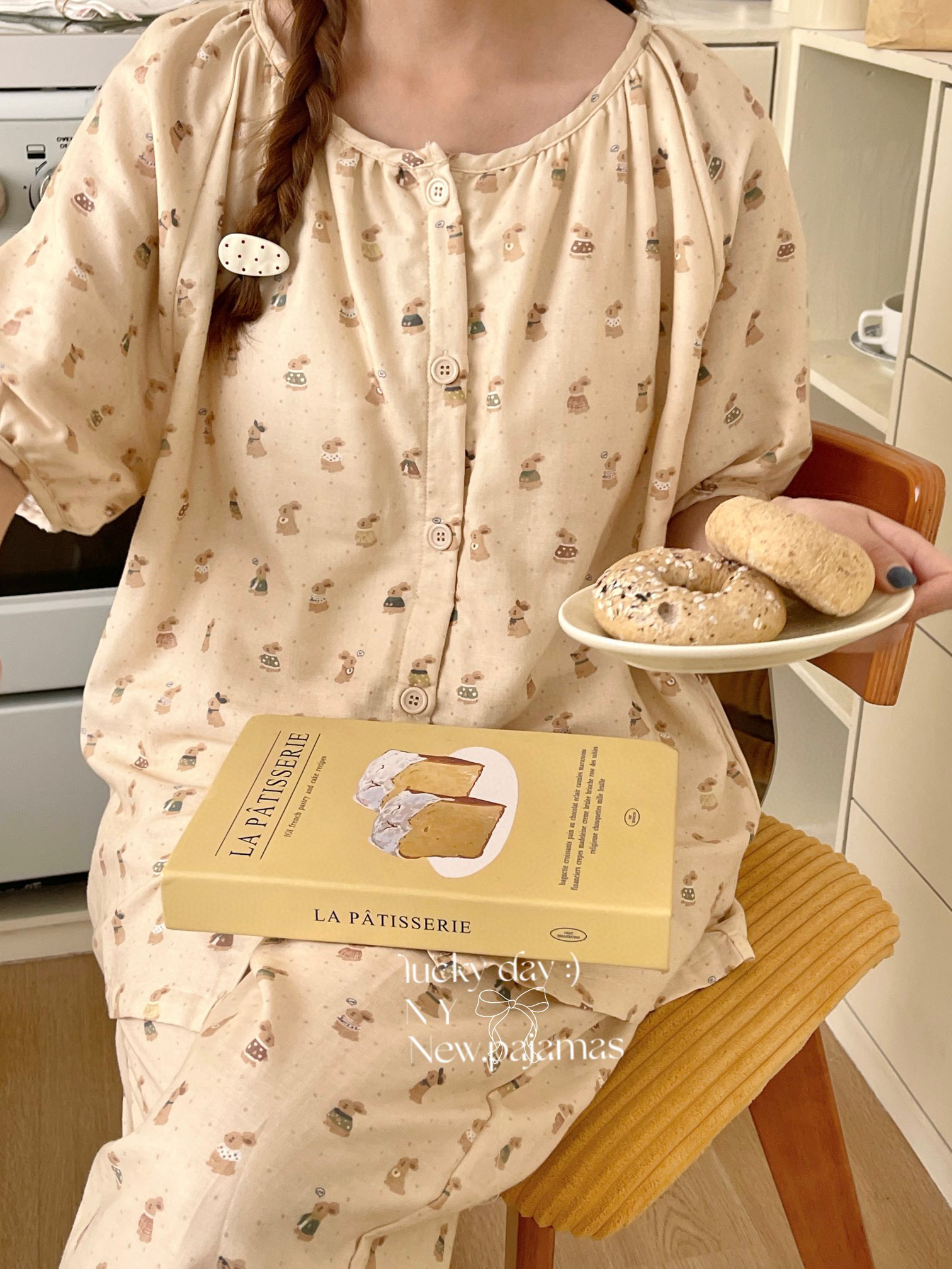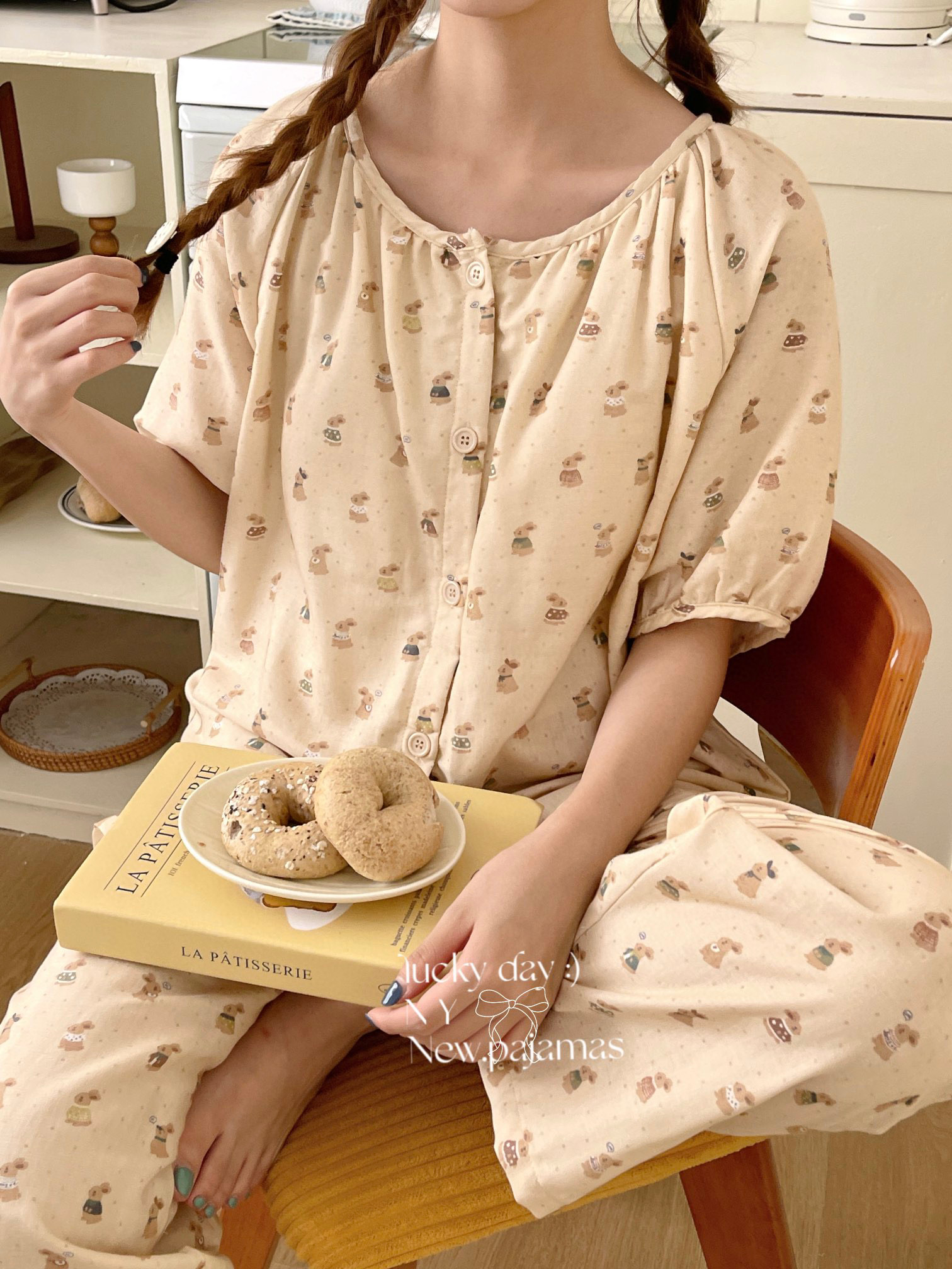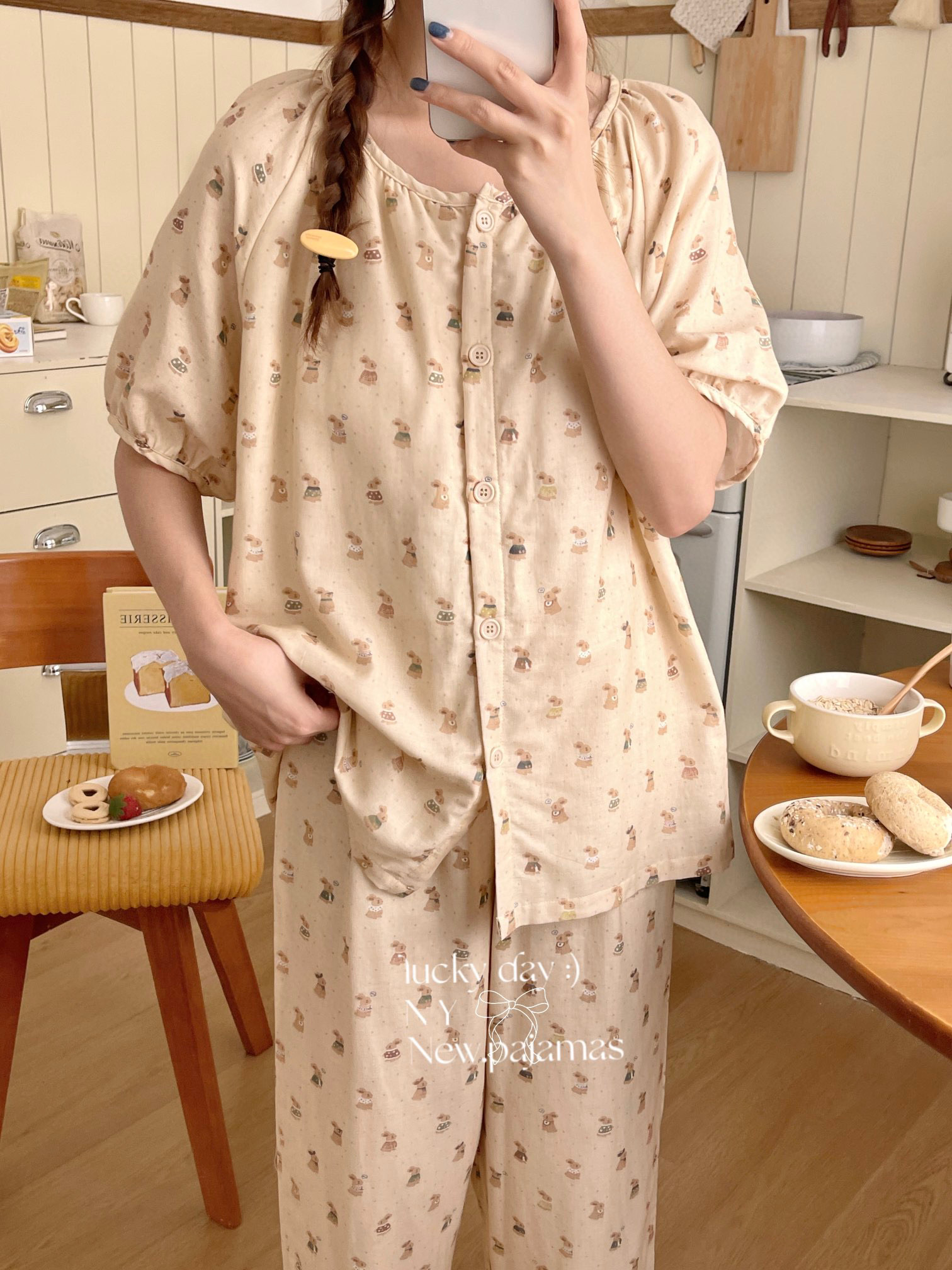 当前位置: 91家纺网 > 商品网购 > 居家日用 > 睡衣/家居服套装 > 纽约生活 有氧纱韩系家居服圆领短袖长裤自带胸垫套装 兔叽酱