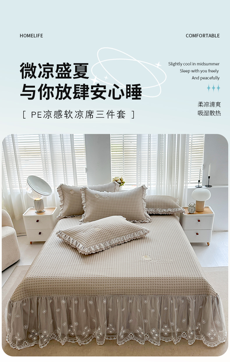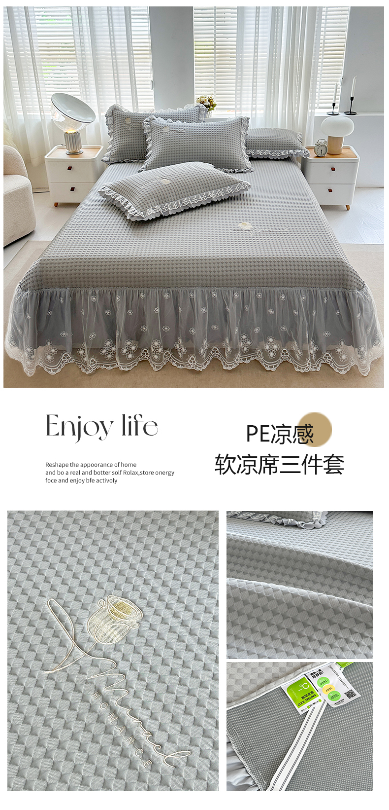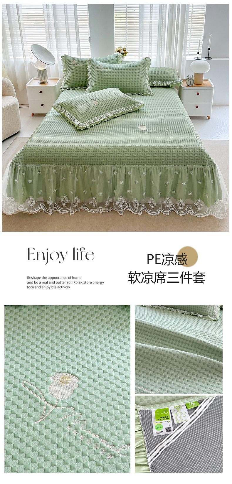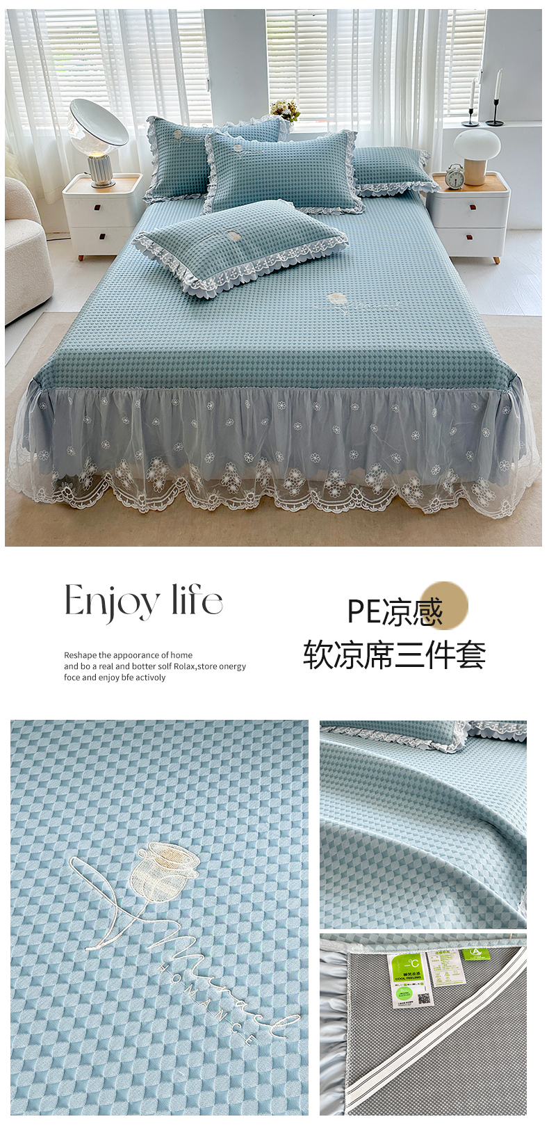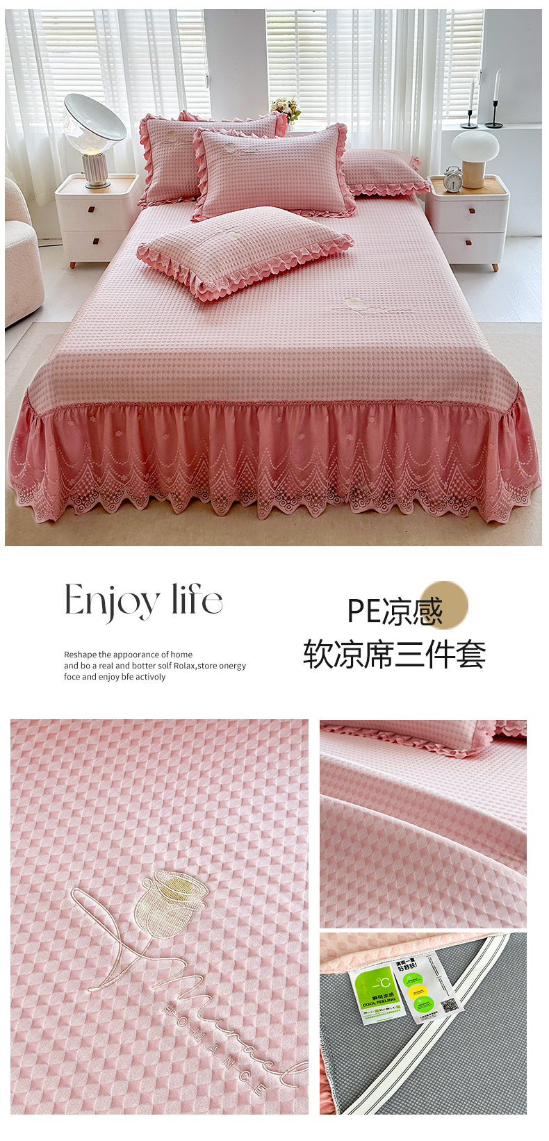 (总)代芙家纺 2025新款PE凉感软凉席床裙款三件套控价238