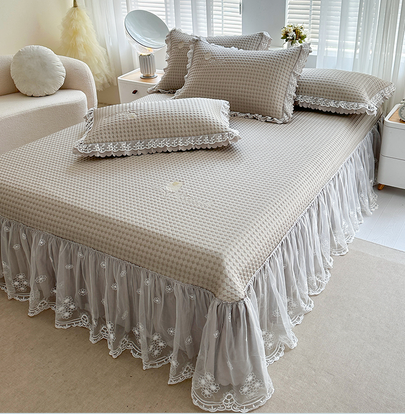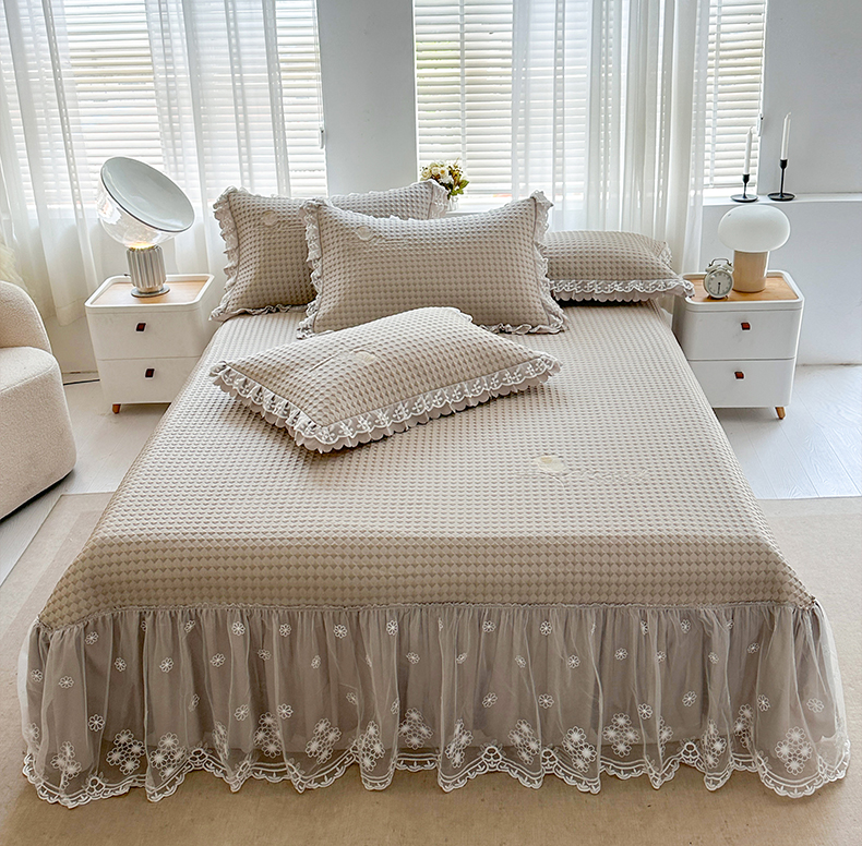 (总)代芙家纺 2025新款锦棉床盖四件套-花边款,花香-花边款-豆沙粉,花香-花边款-酒红,花香-花边款-绅士蓝,花香-花边款-雅灰