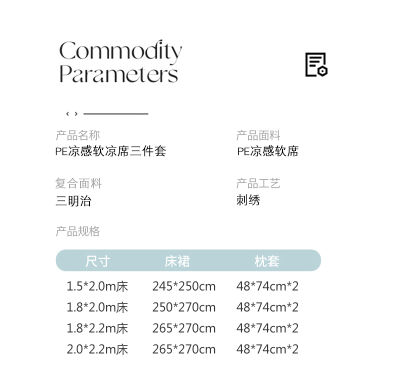 商品名称:(总)代芙家纺 2025新款PE凉感软凉席床裙款三件套控价238
