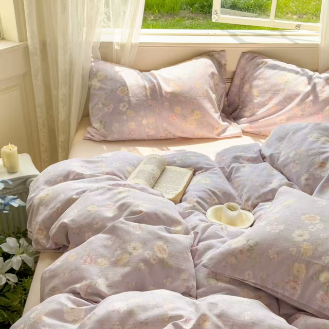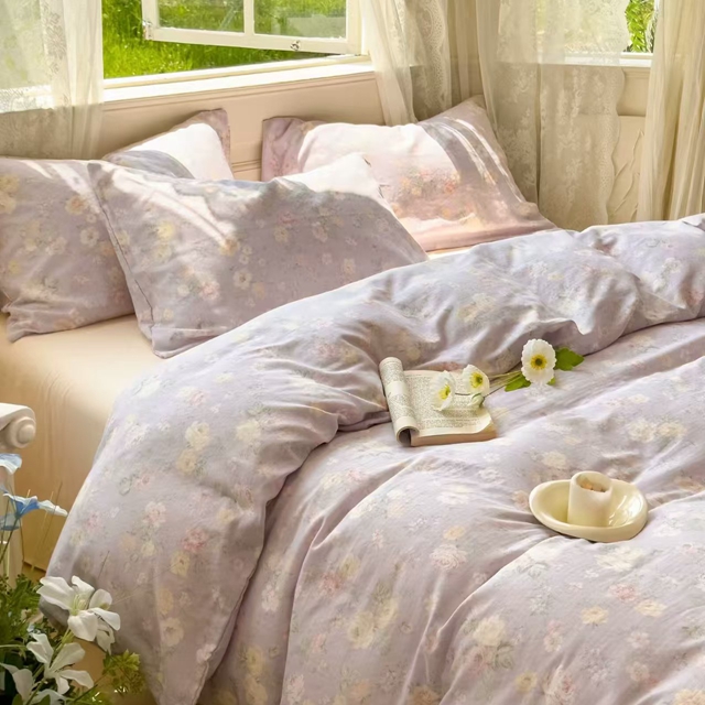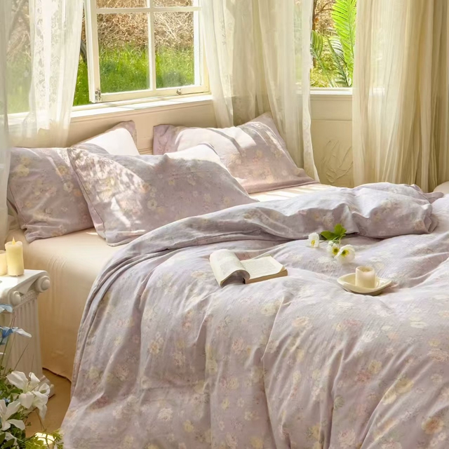 (总)栩裕纺织 2025新款全棉双层纱床盖三件套四件套,可可甜心粉,梦寐花都,抹茶小团子-咖,茉莉清风-粉,木映-绿,暮冬-紫,甜音少女-桔,樱桃奶盖-粉