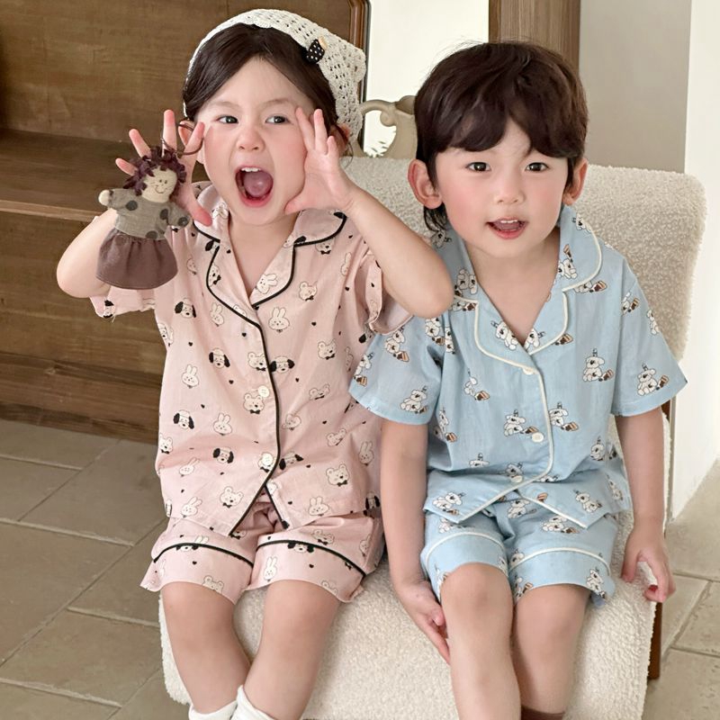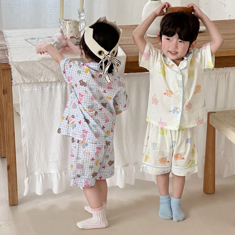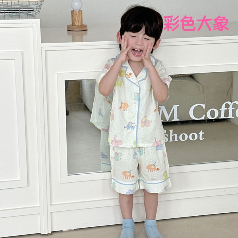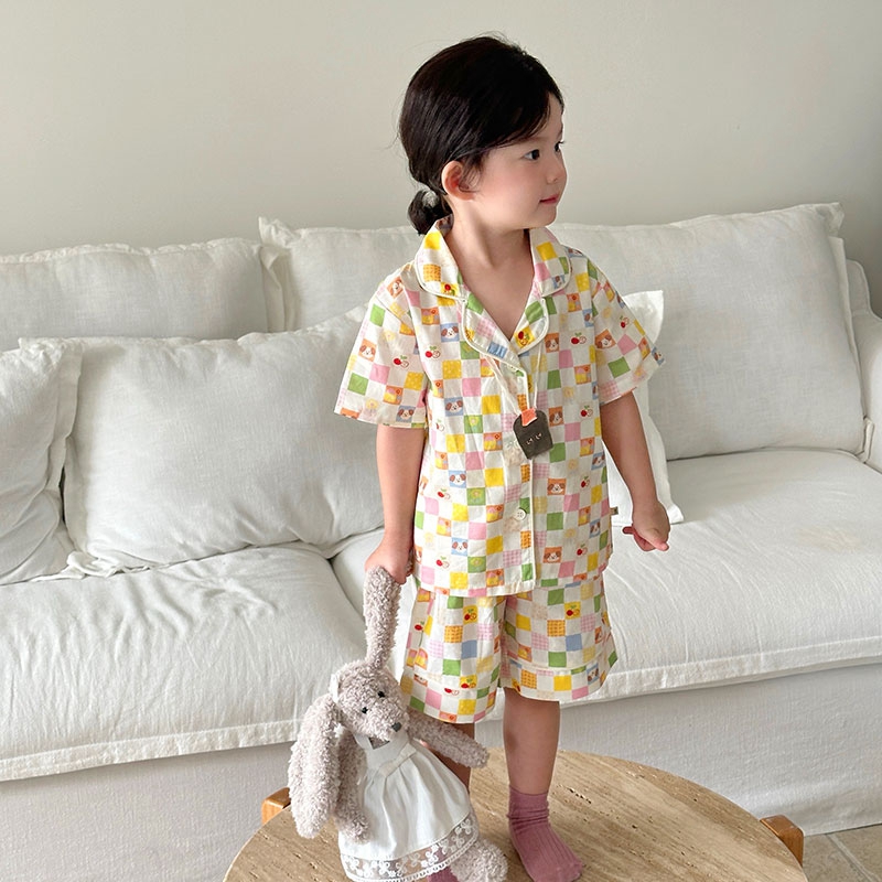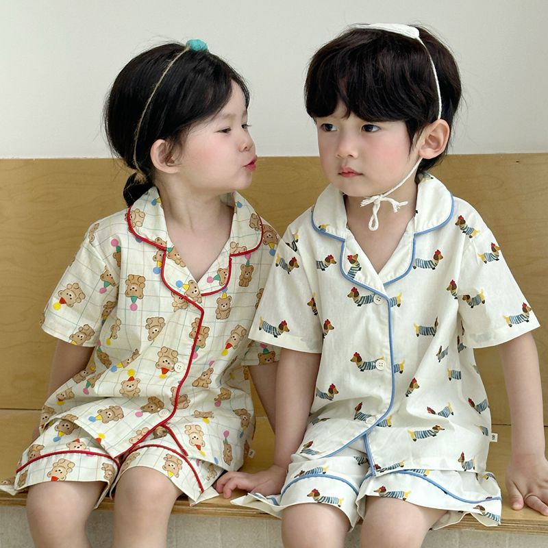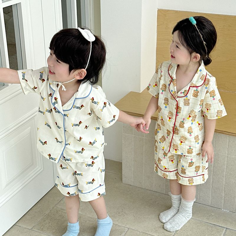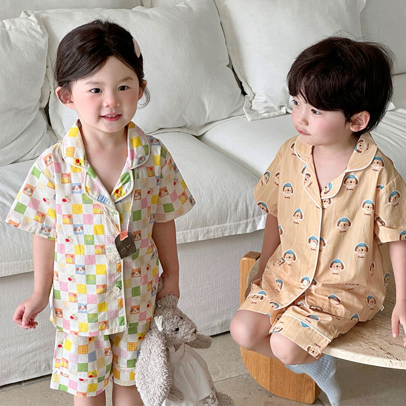 (总)妍景家居生活馆 2025新款儿童翻领斜纹棉夏季短袖套装