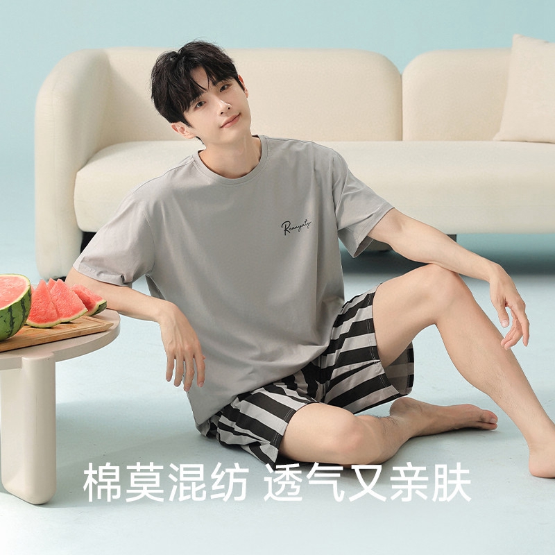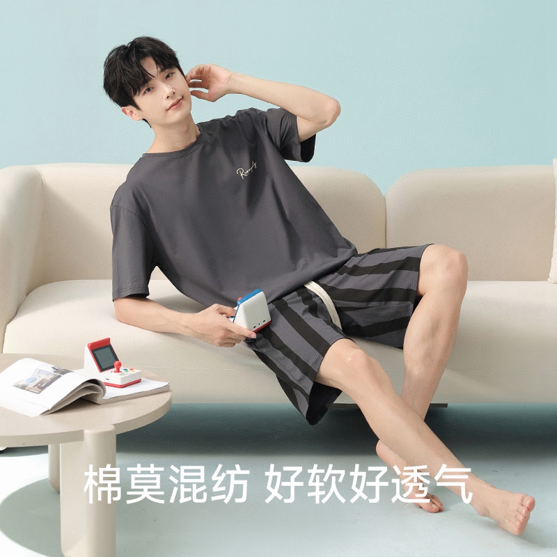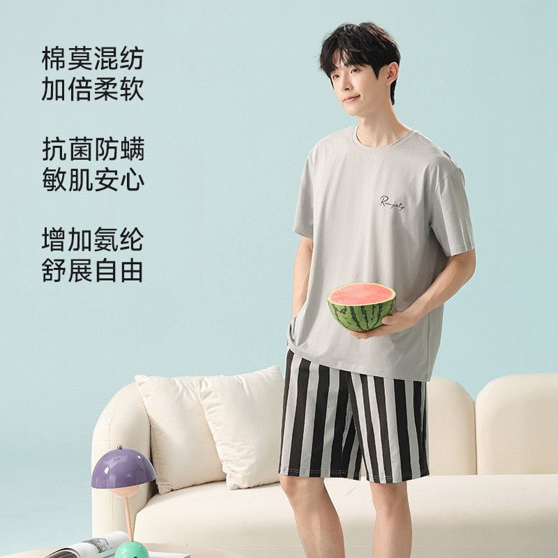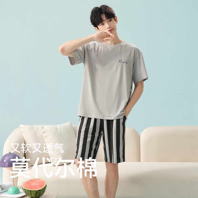商品名称:妍景家居生活馆 2025新款莫代尔棉男士套装 浅灰