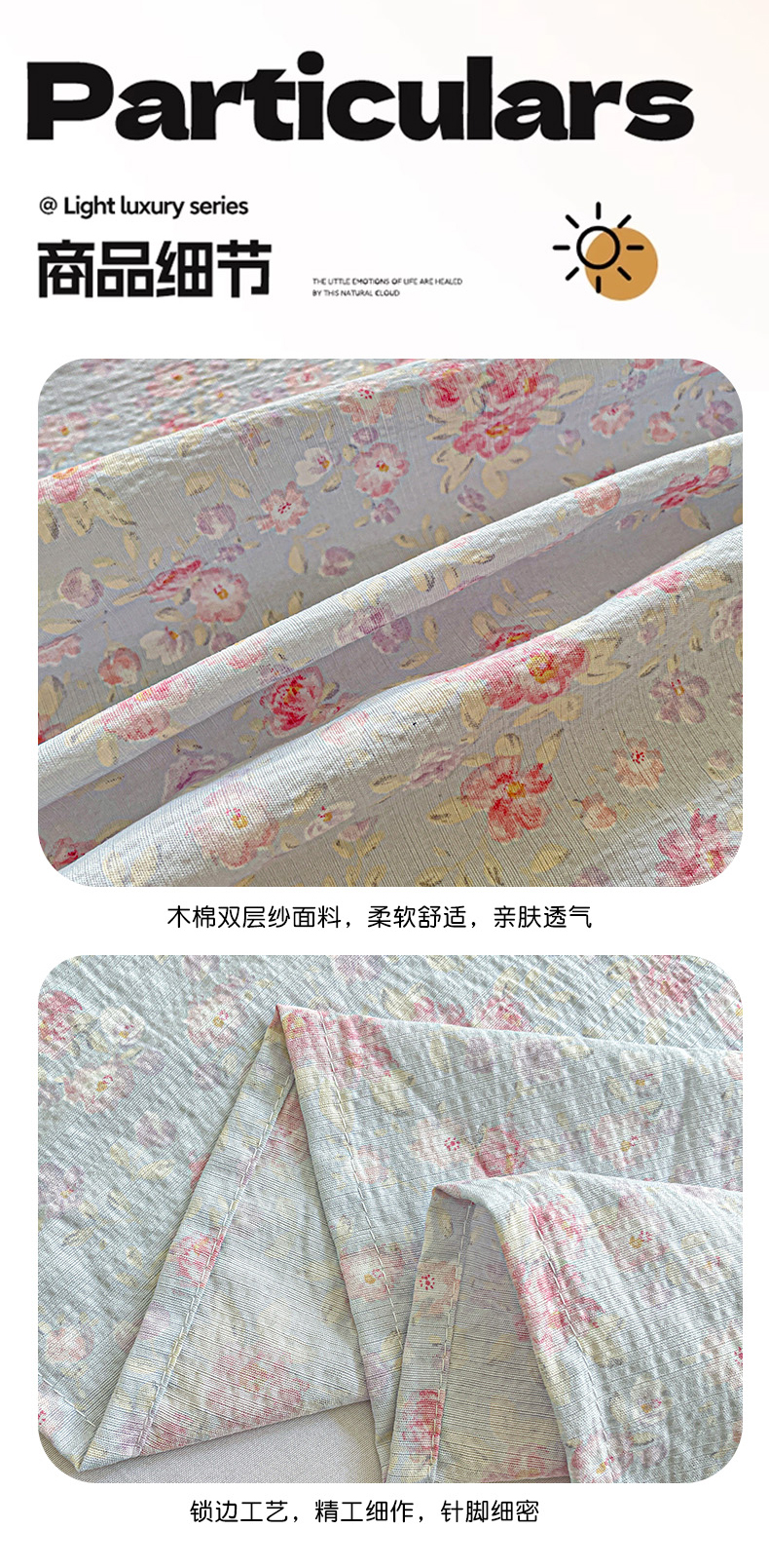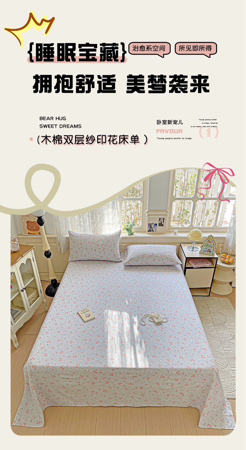 当前位置: 91家纺网 > 商品网购 > 床品套件 > 四件套 > 双层纱四件套 > 暖芯优选 2025新款母婴级ins小清新双层纱印花床单枕套三件套(提供买家秀) 洛城时光