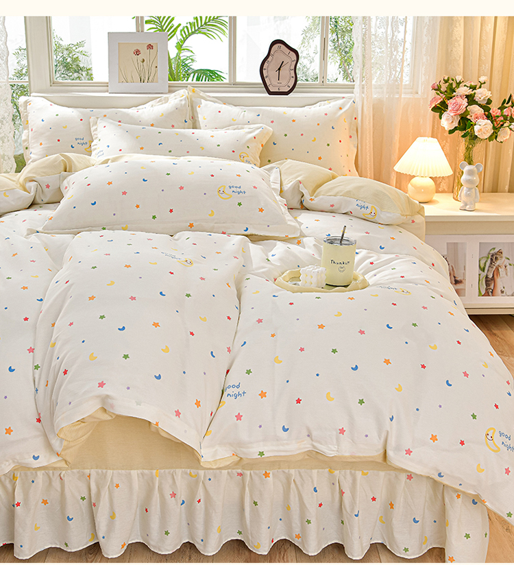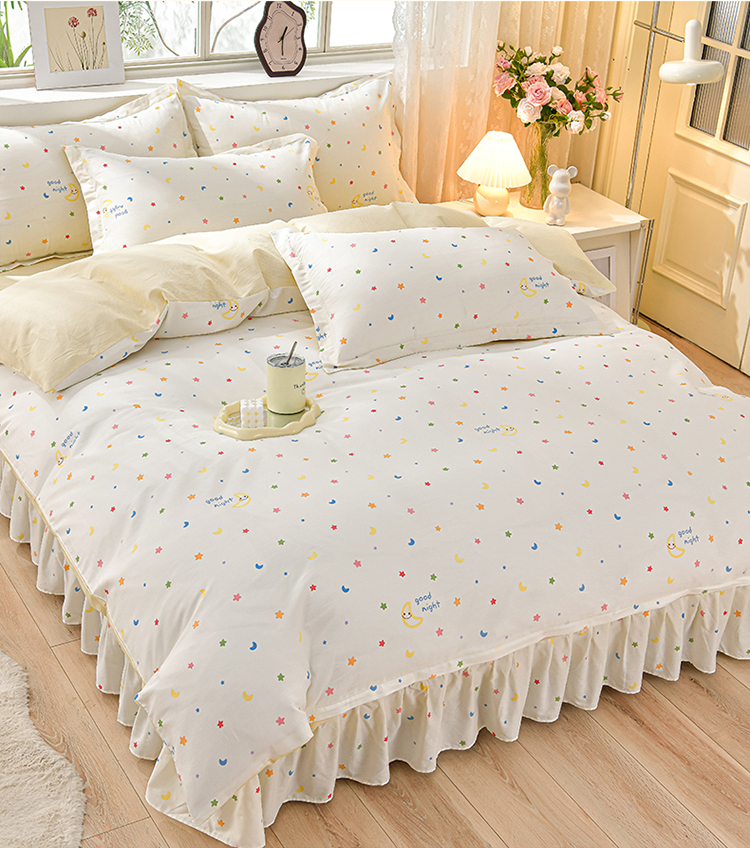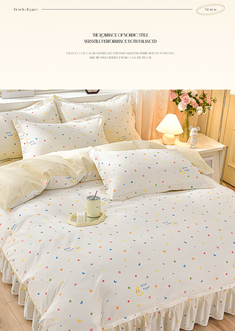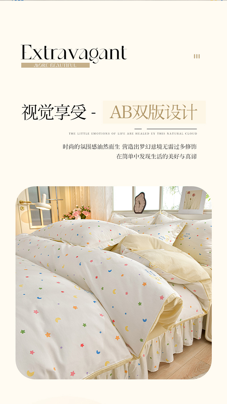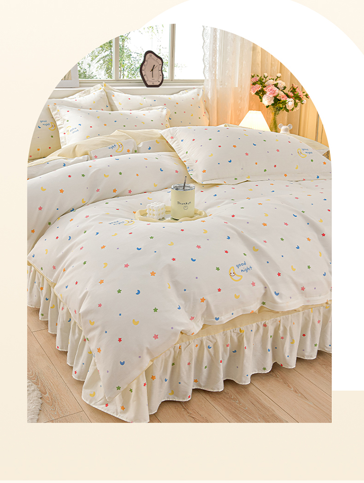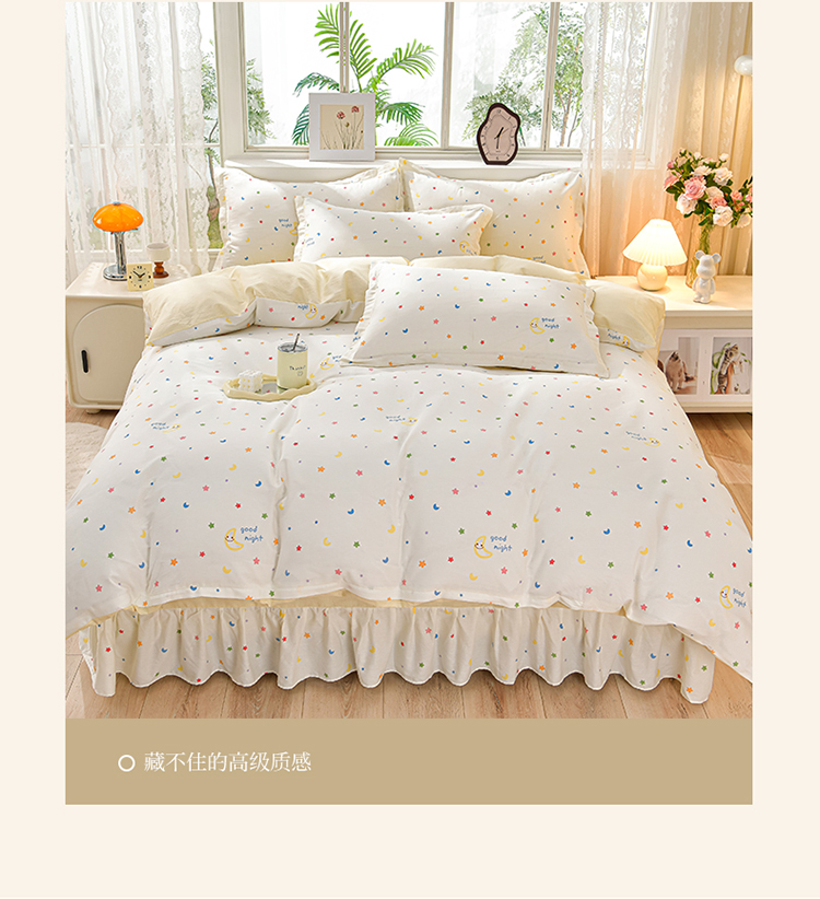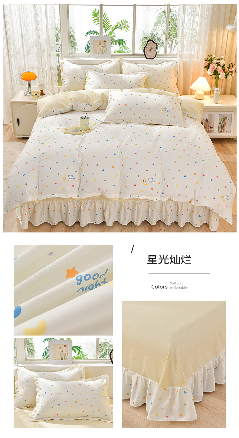 商品名称:绘萱家居 2025新款100%全棉床裙款斜纹印花四件套 星光灿烂