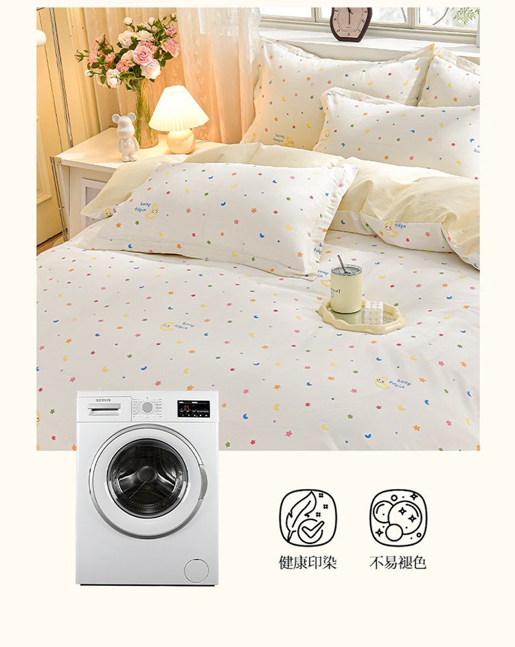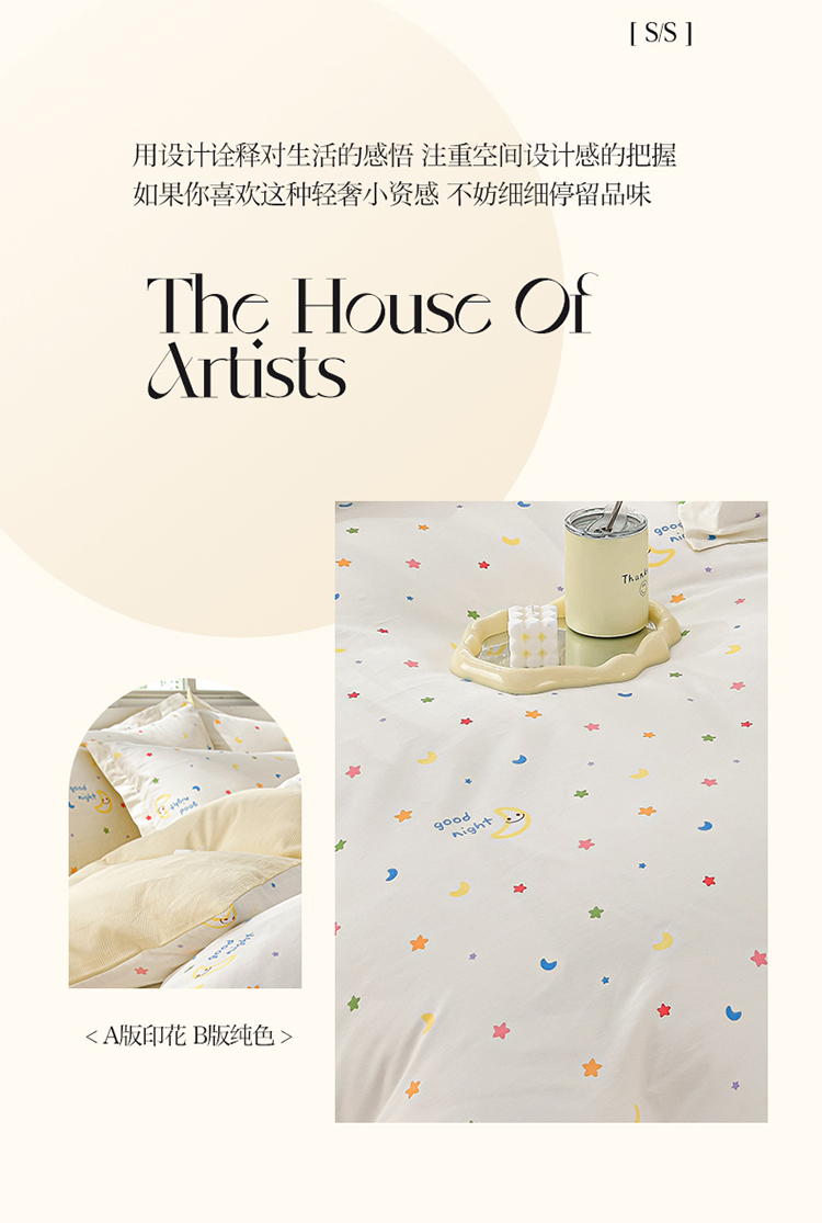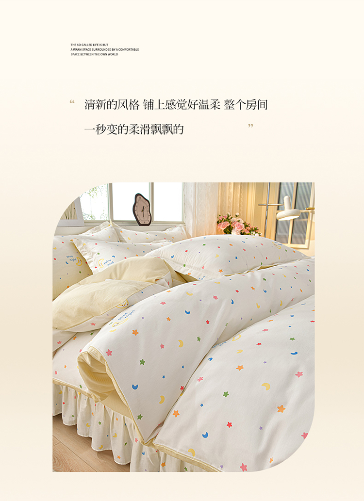 绘萱家居 2025新款100%全棉床裙款斜纹印花四件套 星光灿烂