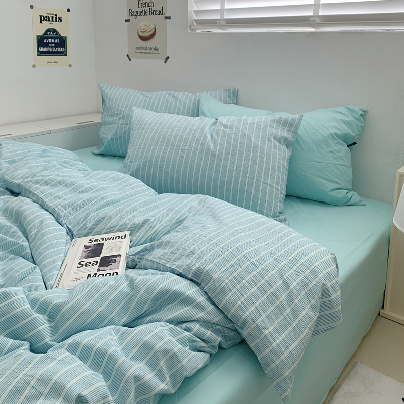 当前位置: 91家纺网 > 商品网购 > 床品套件 > 四件套 > 全棉普通四件套 > 柚可家居 2024新款40支全棉色织水洗棉单品系列-四件套 细绿竖条纹