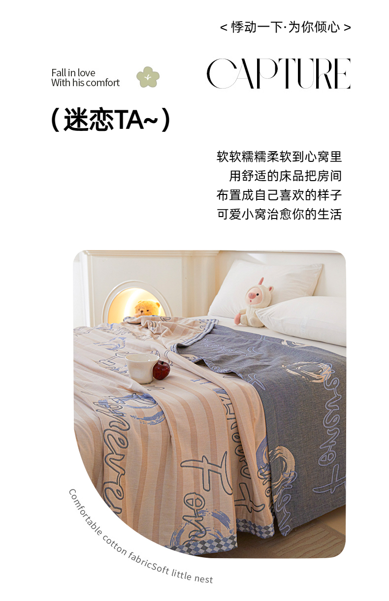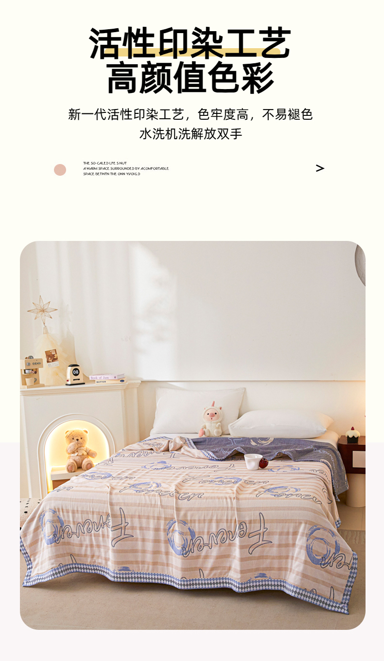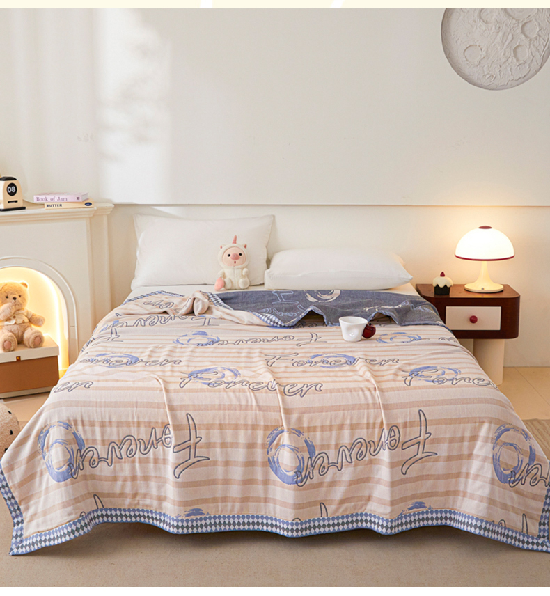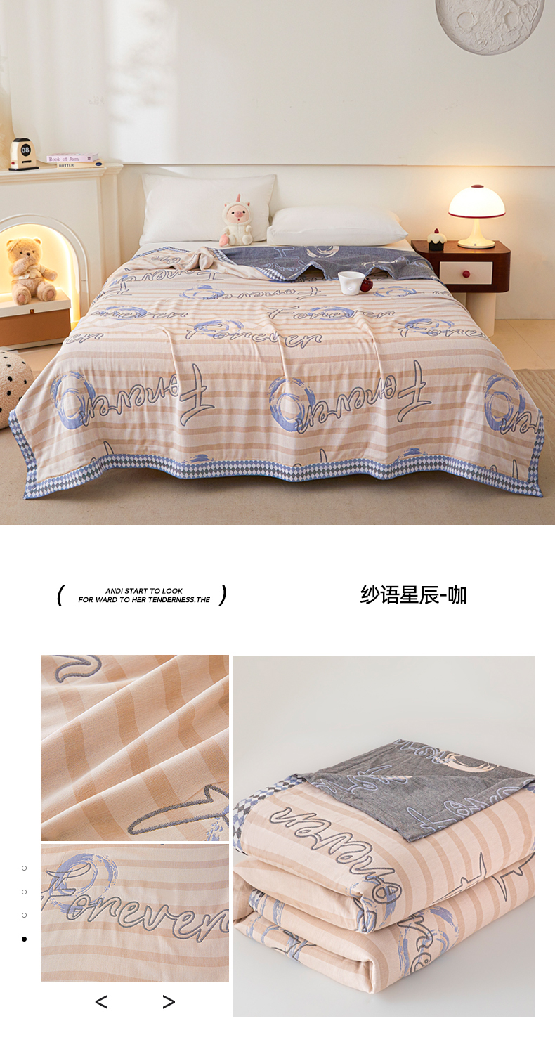 商品名称:悦然毛巾被 2025新款八层纱布盖毯毛巾被夏被夏凉被空调被 纱语星辰咖