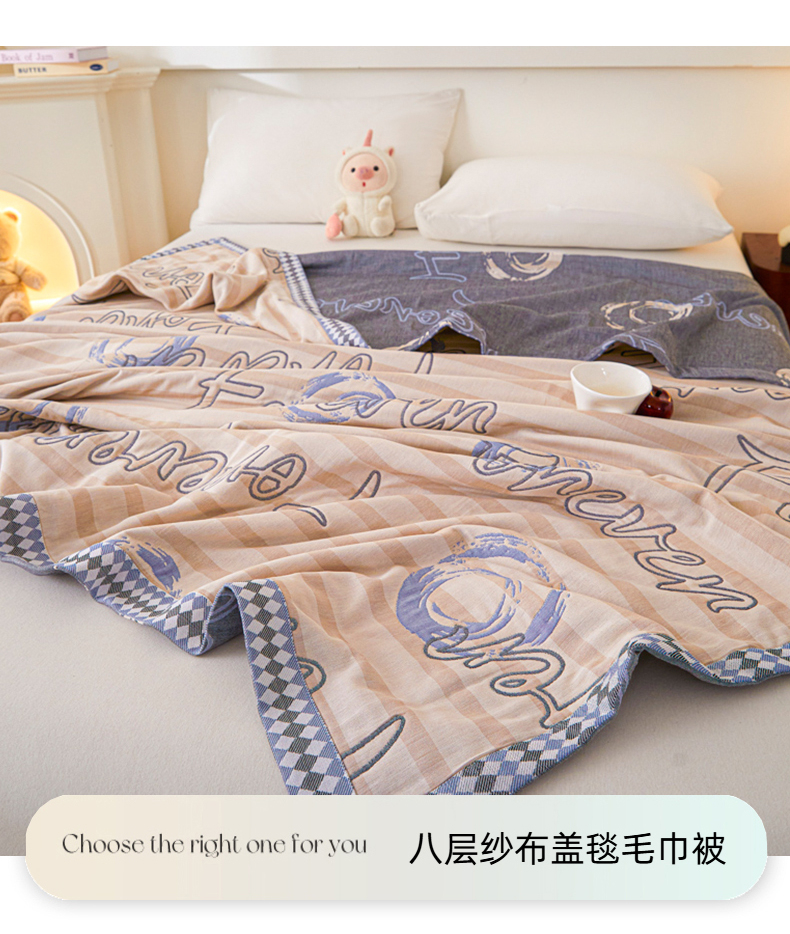 悦然毛巾被 2025新款八层纱布盖毯毛巾被夏被夏凉被空调被 纱语星辰咖