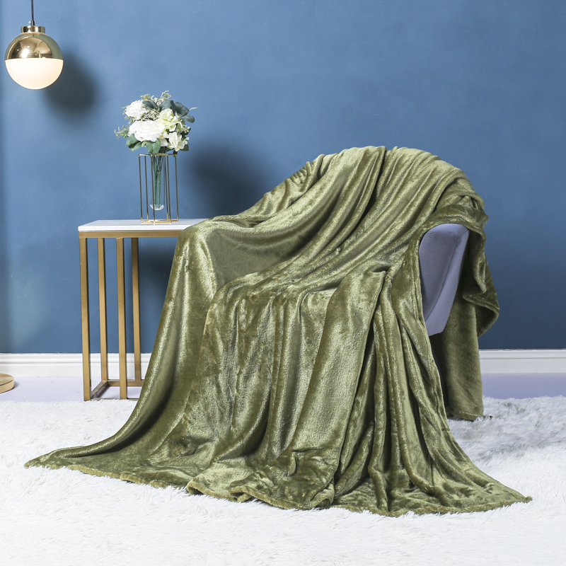 商品名称:胜百毛毯2025新款素色200克法兰绒毯 军绿