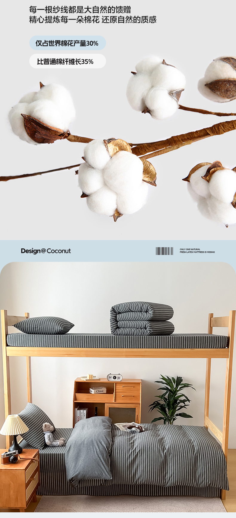 九沐良品 2025新款全棉纯棉色织水洗棉学生三件套宿舍三件套上下铺三件套 中灰条