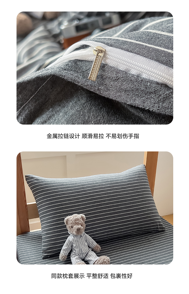 商品名称:九沐良品 2025新款全棉纯棉色织水洗棉学生三件套宿舍三件套上下铺三件套 中灰条