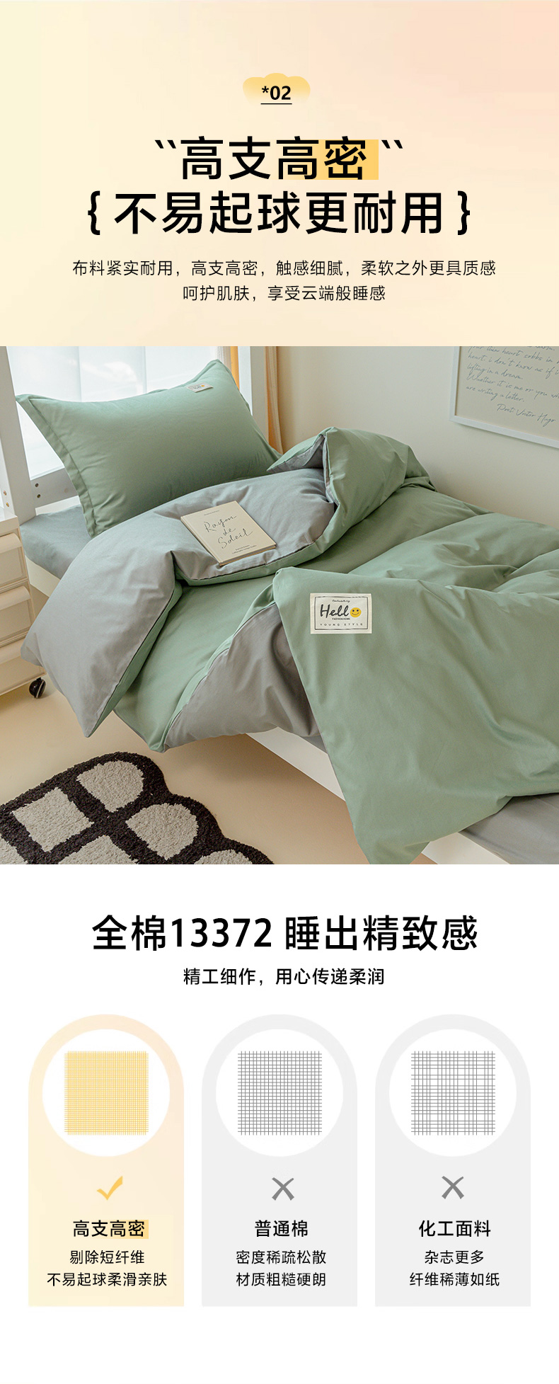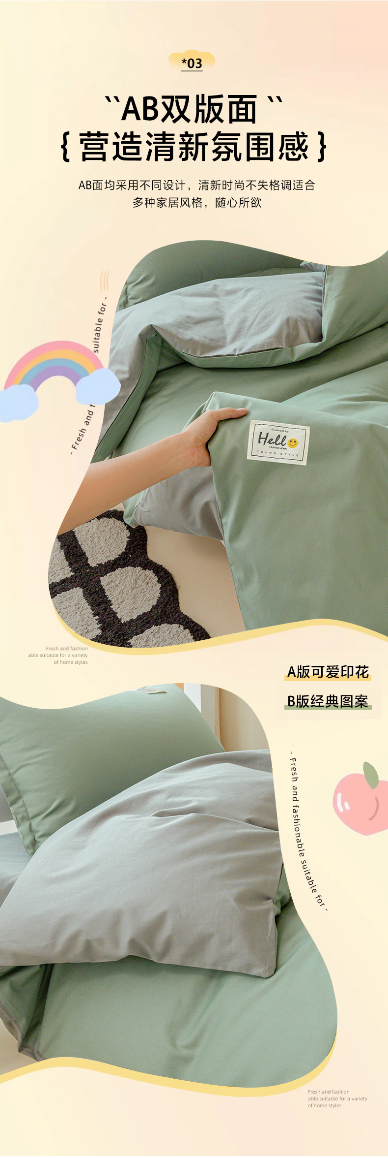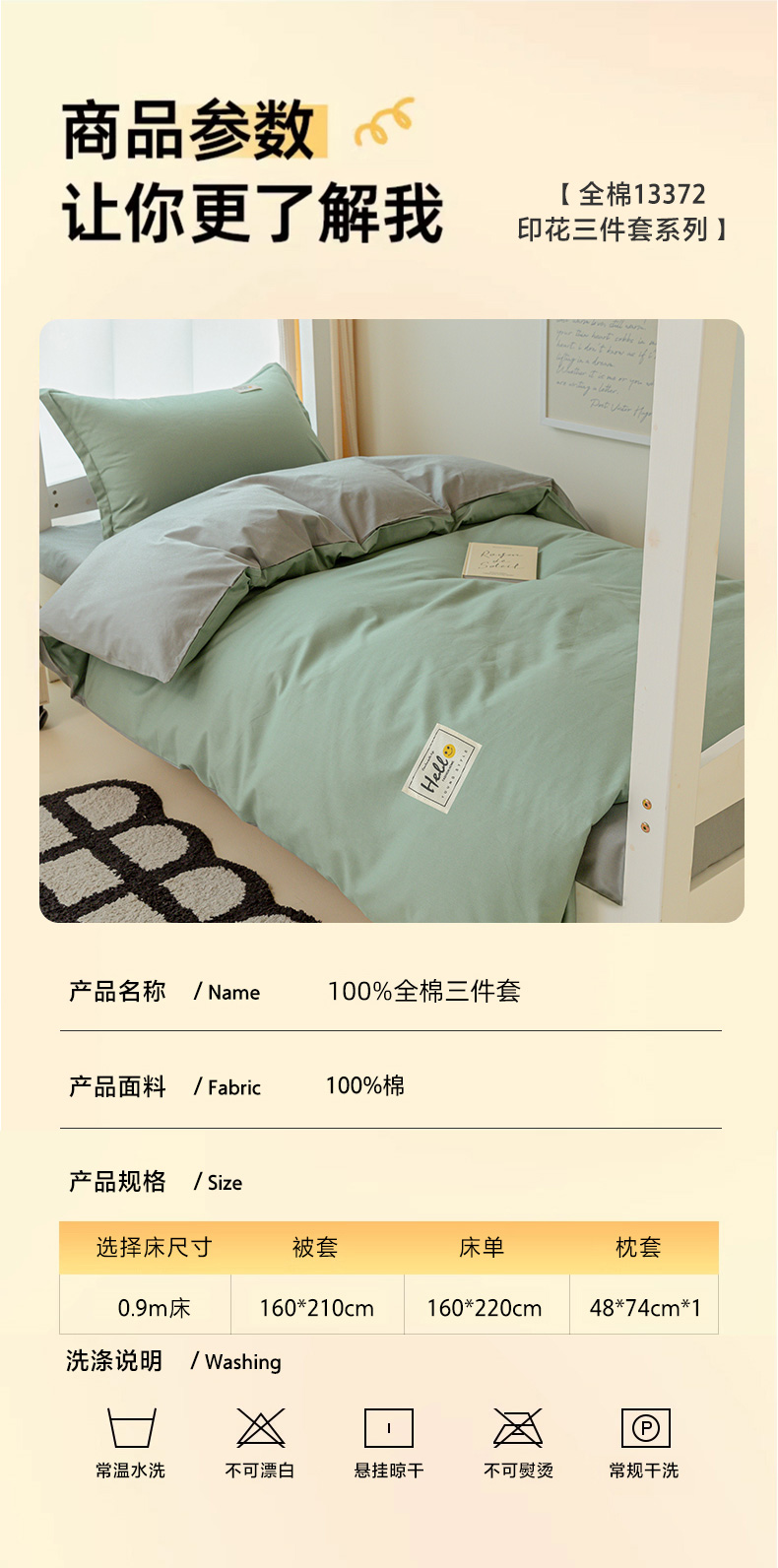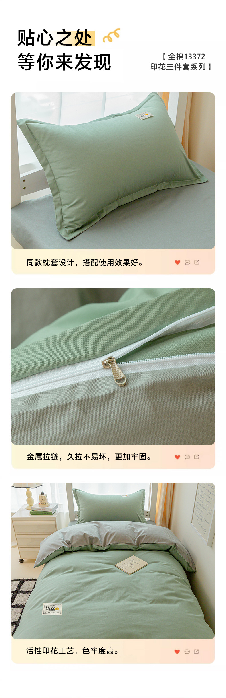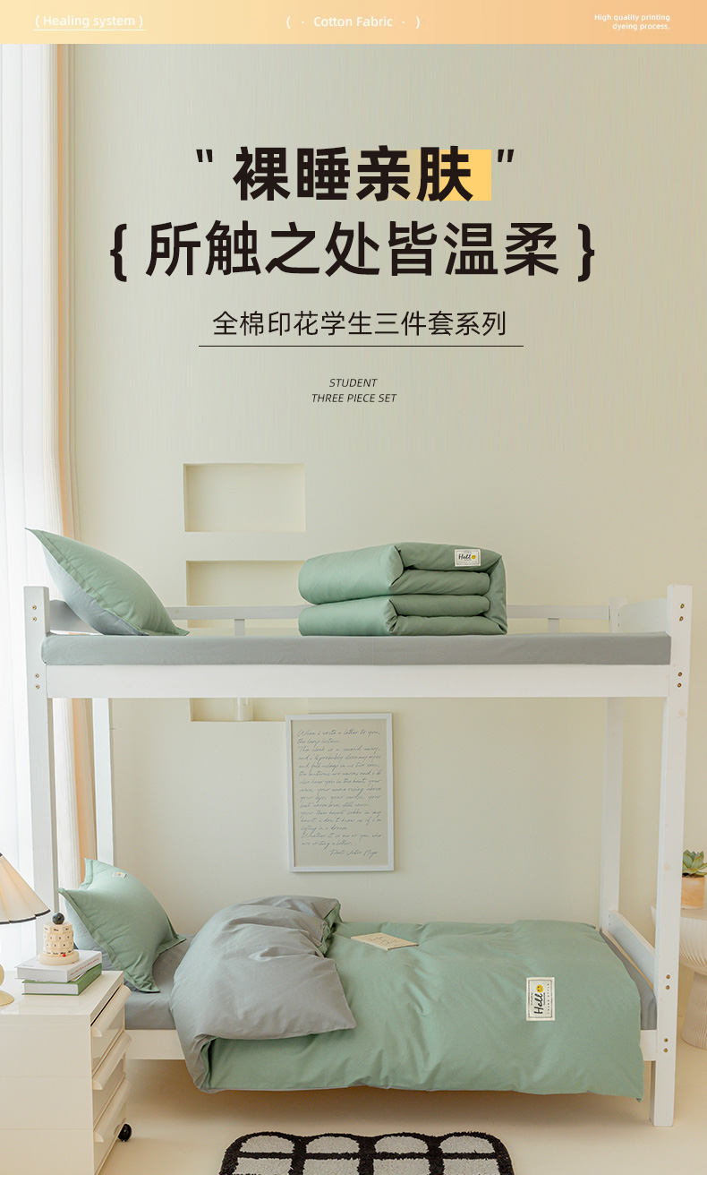 商品名称:贝兰仙奴 2025新款13372全棉印花简约学生三件套 抹茶