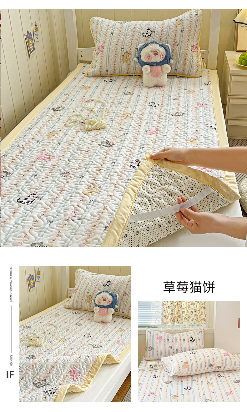 商品名称:纽缦家纺 2025新款A类水洗棉学生床垫垫子 草莓猫饼