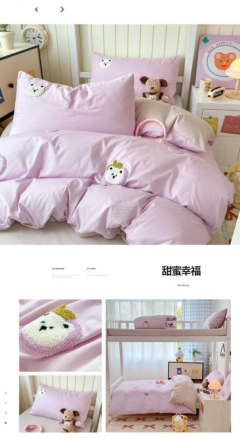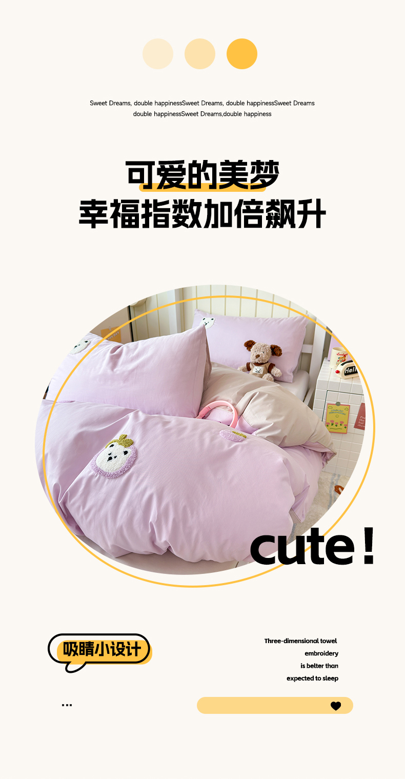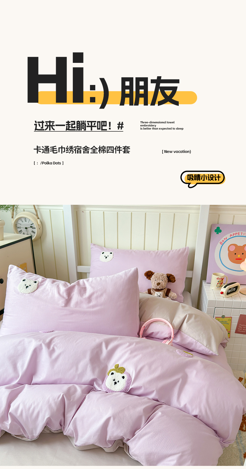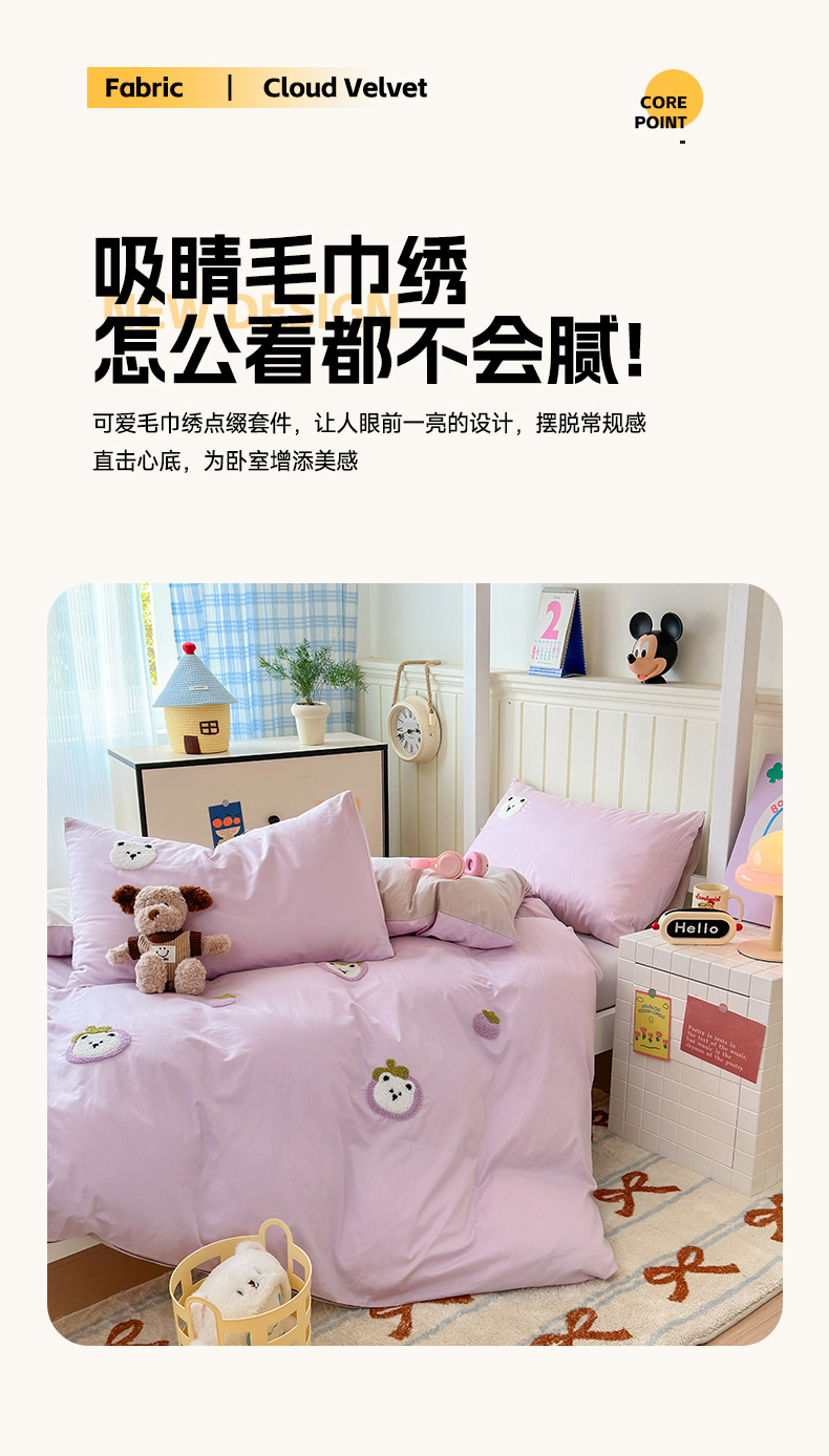 当前位置: 91家纺网 > 商品网购 > 床品套件 > 三件套 > 锦觅 2025新款学生季全棉纯棉毛巾绣三件套奶油小清新刺绣四件套(全文件大图以及买家秀) 甜蜜幸福