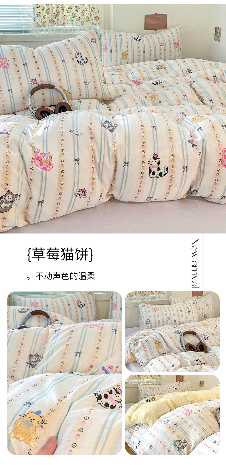 (总)纽缦家纺2025新款云感提花双层纱床盖韩版四件套,爱如星辰,暗恋,波点世界,大吉大厘,海像森林,恋如青柠香,落日暮年绿,猫猫晚宴,猫咪恋人,玫瑰哒,蜜糖之恋,葡萄七分甜,奇妙小熊米,倾心紫,森田野园,他和她的兔,兔子的欢喜,相思蓝,小豹纹,小猫时光蓝,小鸥鸥,有草莓的地方