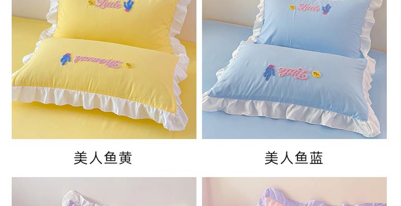 (总)雨菲家纺 2025新款水洗棉卡通公主风毛巾绣荷叶边美人鱼四件套专版花型,美人鱼粉玉,美人鱼粉紫,美人鱼浅黄,美人鱼浅蓝,美人鱼浅紫