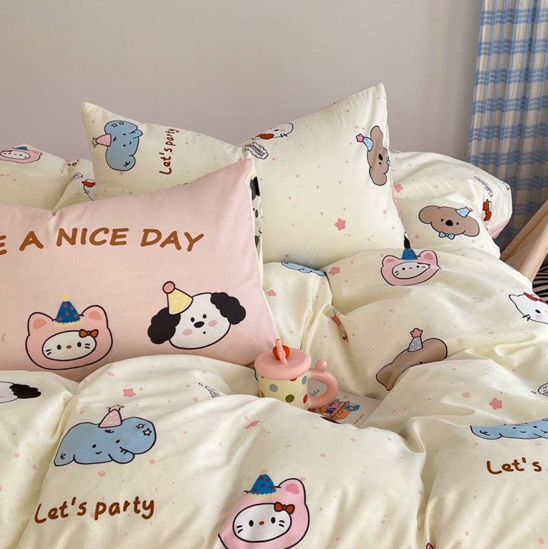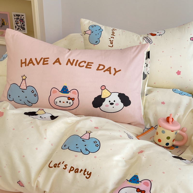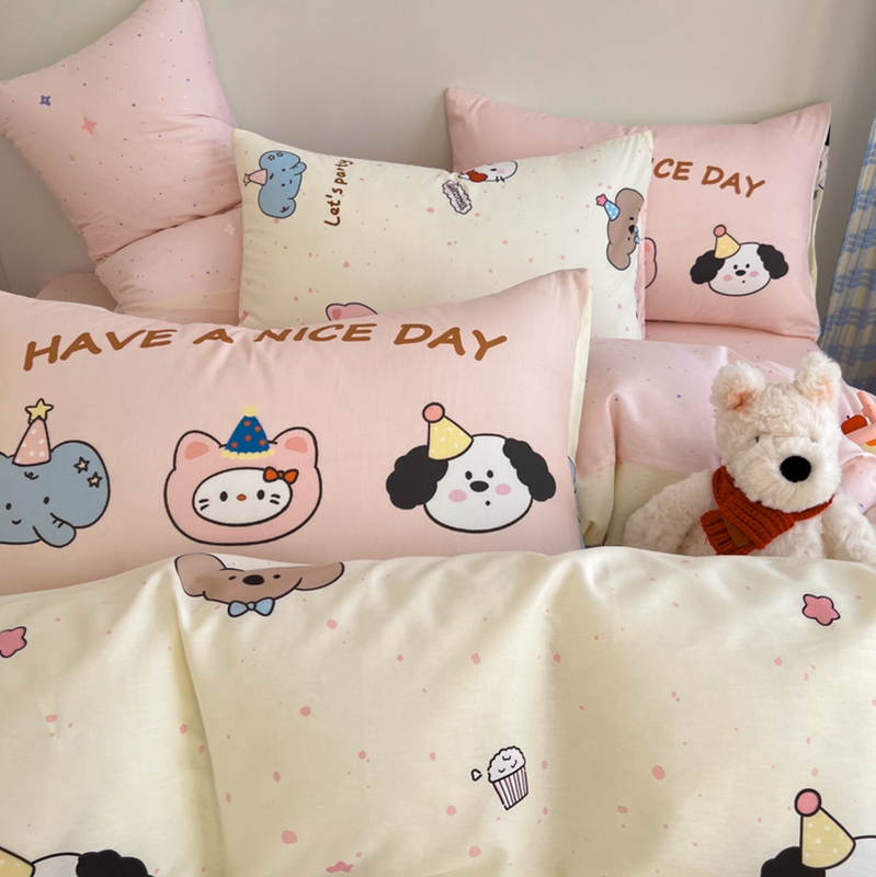 桃喜 2025新款6月开学季全棉混搭枕套13070学生三件套四件套 欢乐动物园
