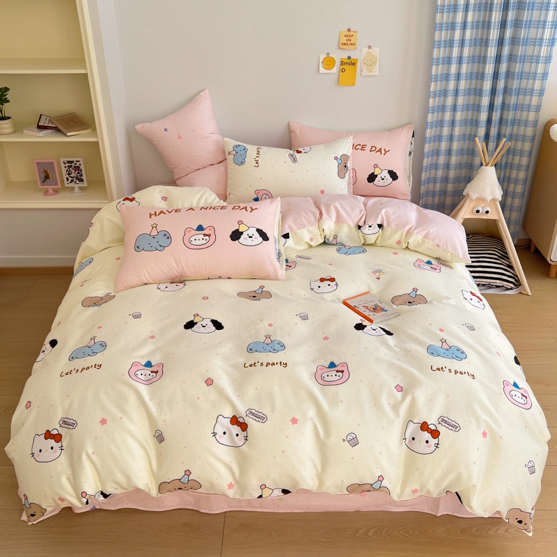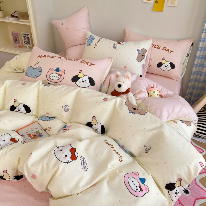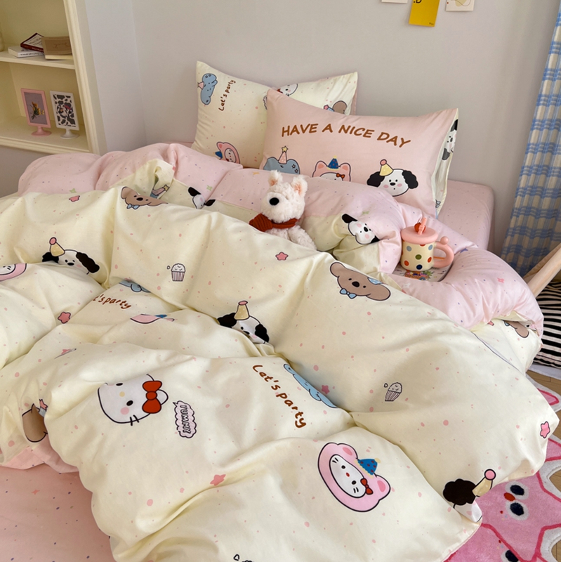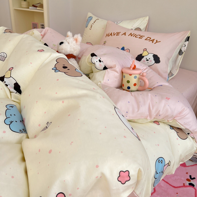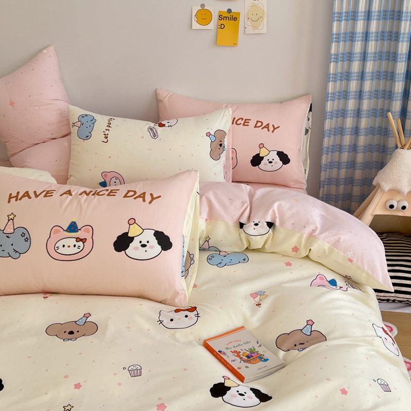 (总)桃喜 2026新款全棉混搭卡通印花学生三件套四件套,费尔岛蝴蝶结小狗,费尔岛小熊,可爱动物团,可爱小兔子,星星猫咪
