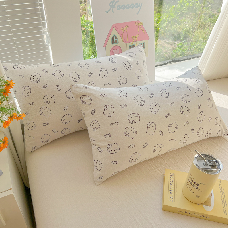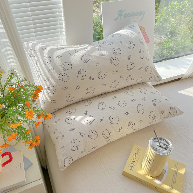 商品名称:韩巢家纺 2025新款云感提花双层纱枕套头套枕芯套 猫咪恋人