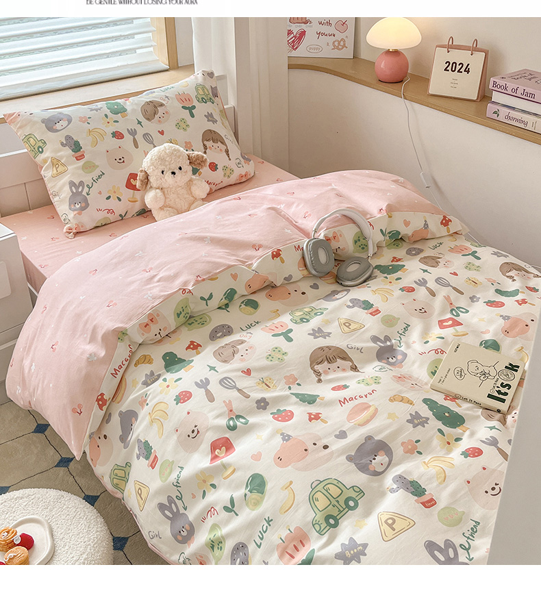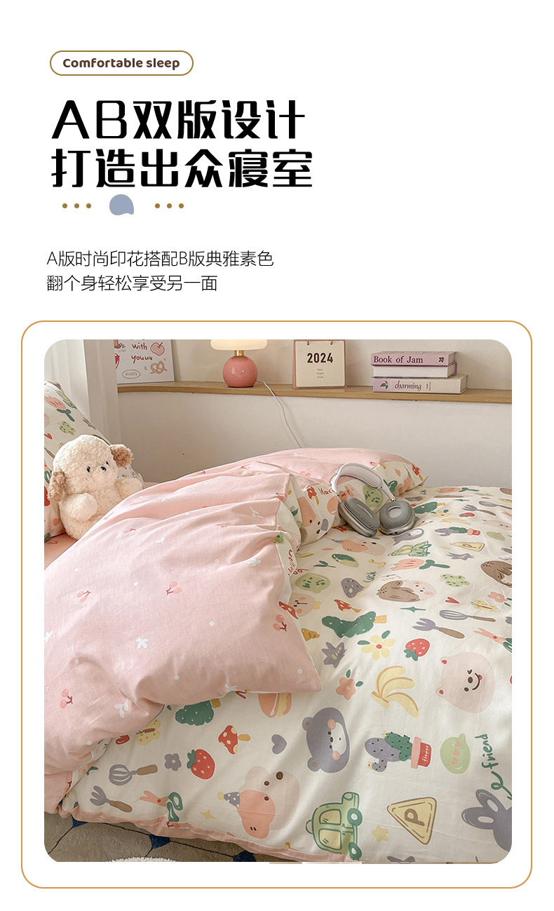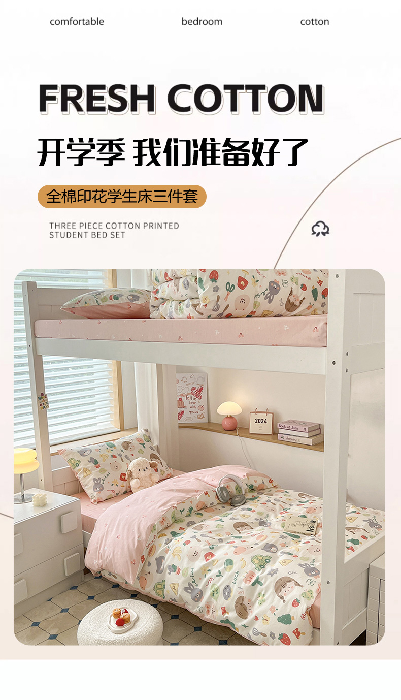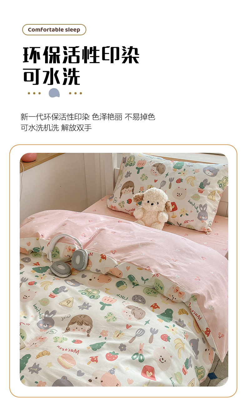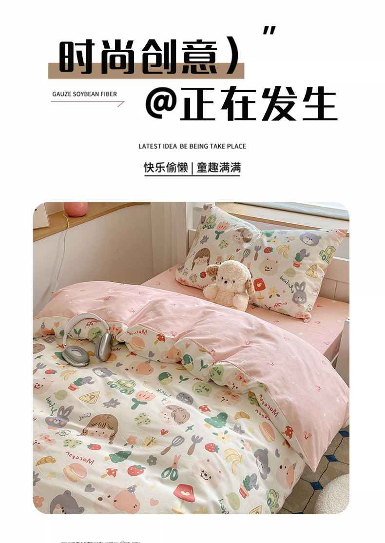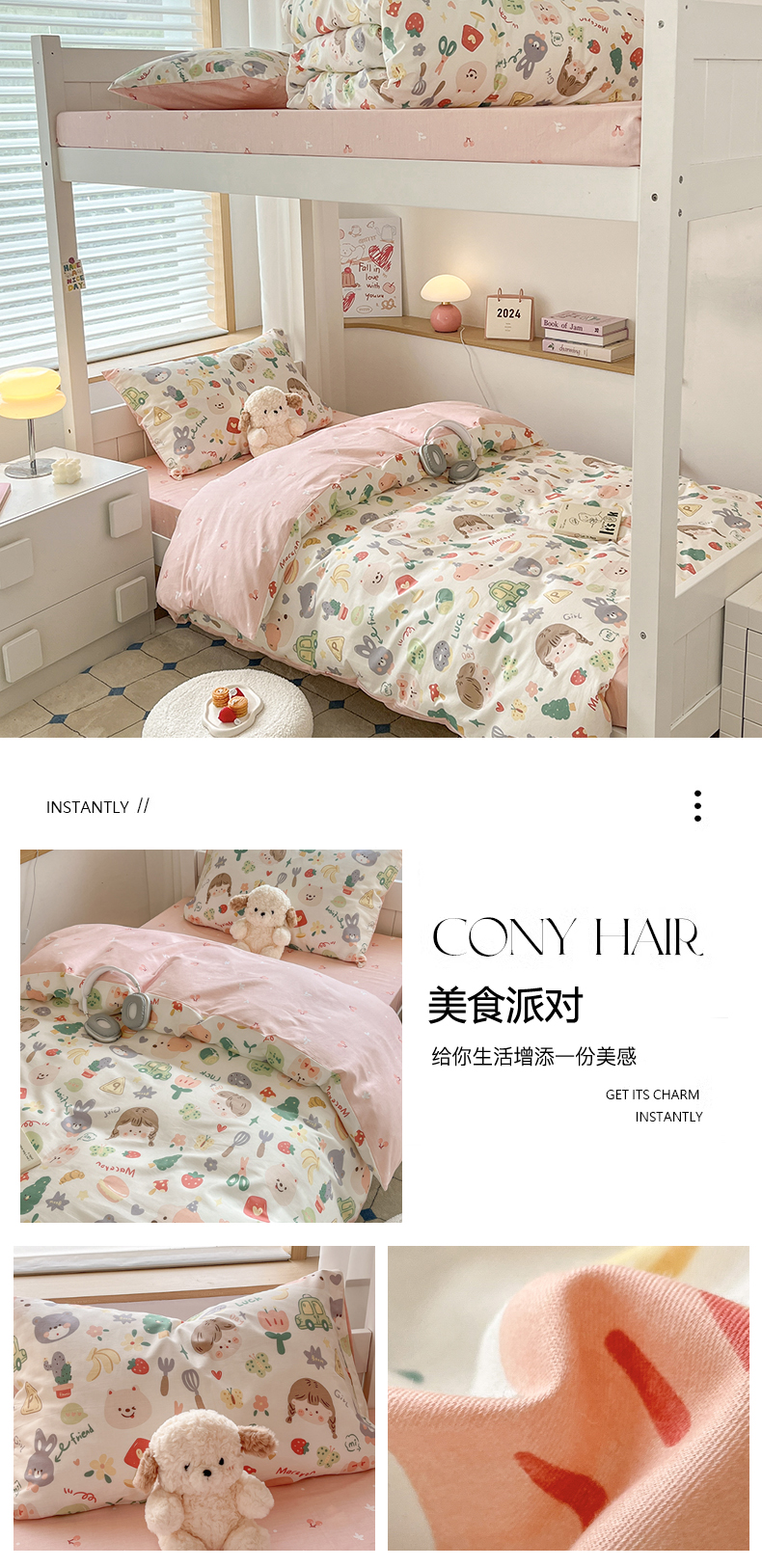 当前位置: 91家纺网 > 商品网购 > 床品套件 > 三件套 > 慕尚家纺 2025新款13070全棉学生季全棉学生床三件套 美食派对