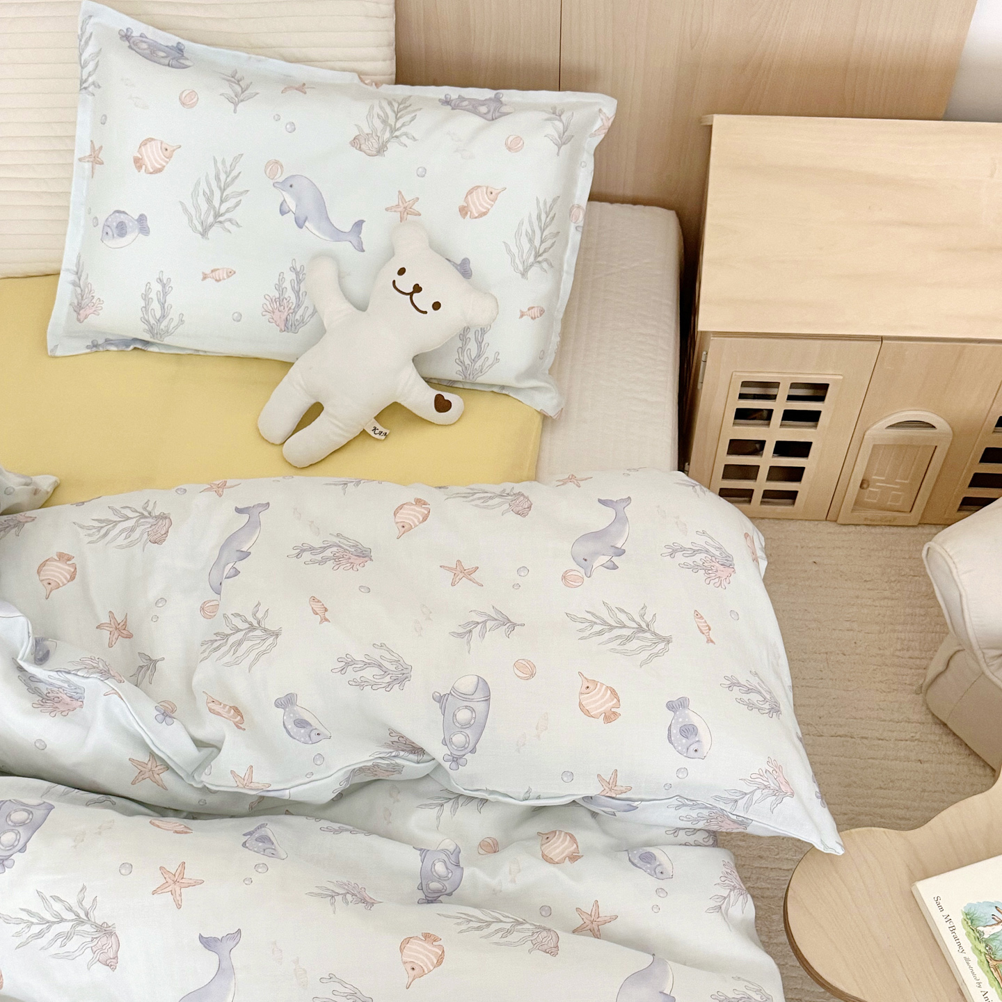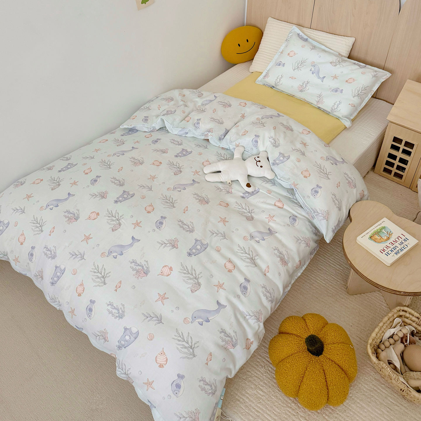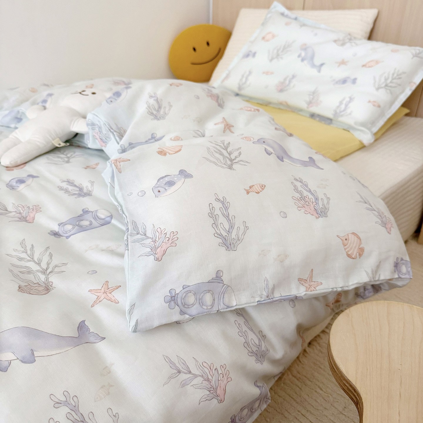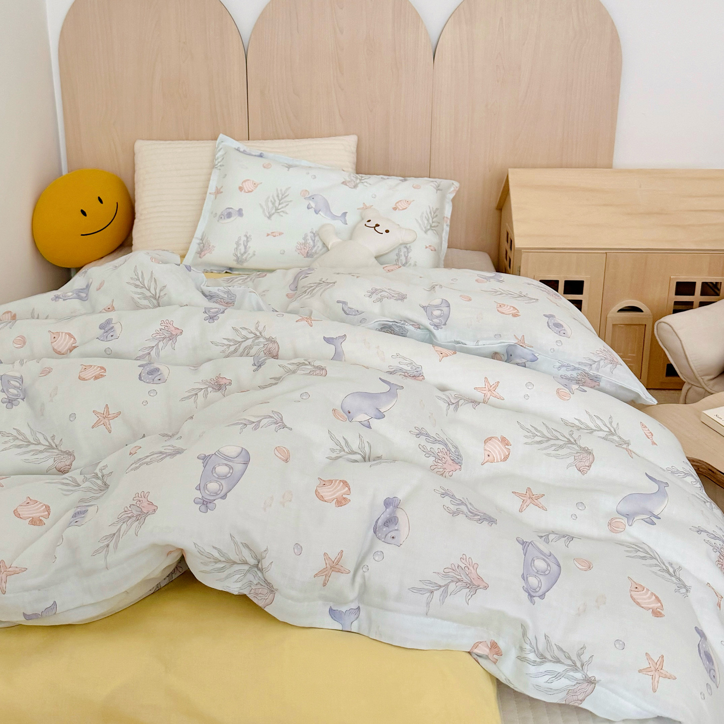 当前位置: 91家纺网 > 商品网购 > 床品套件 > 三件套 > 2025新款全棉26℃有氧双层纱幼儿园多件套 海底世界