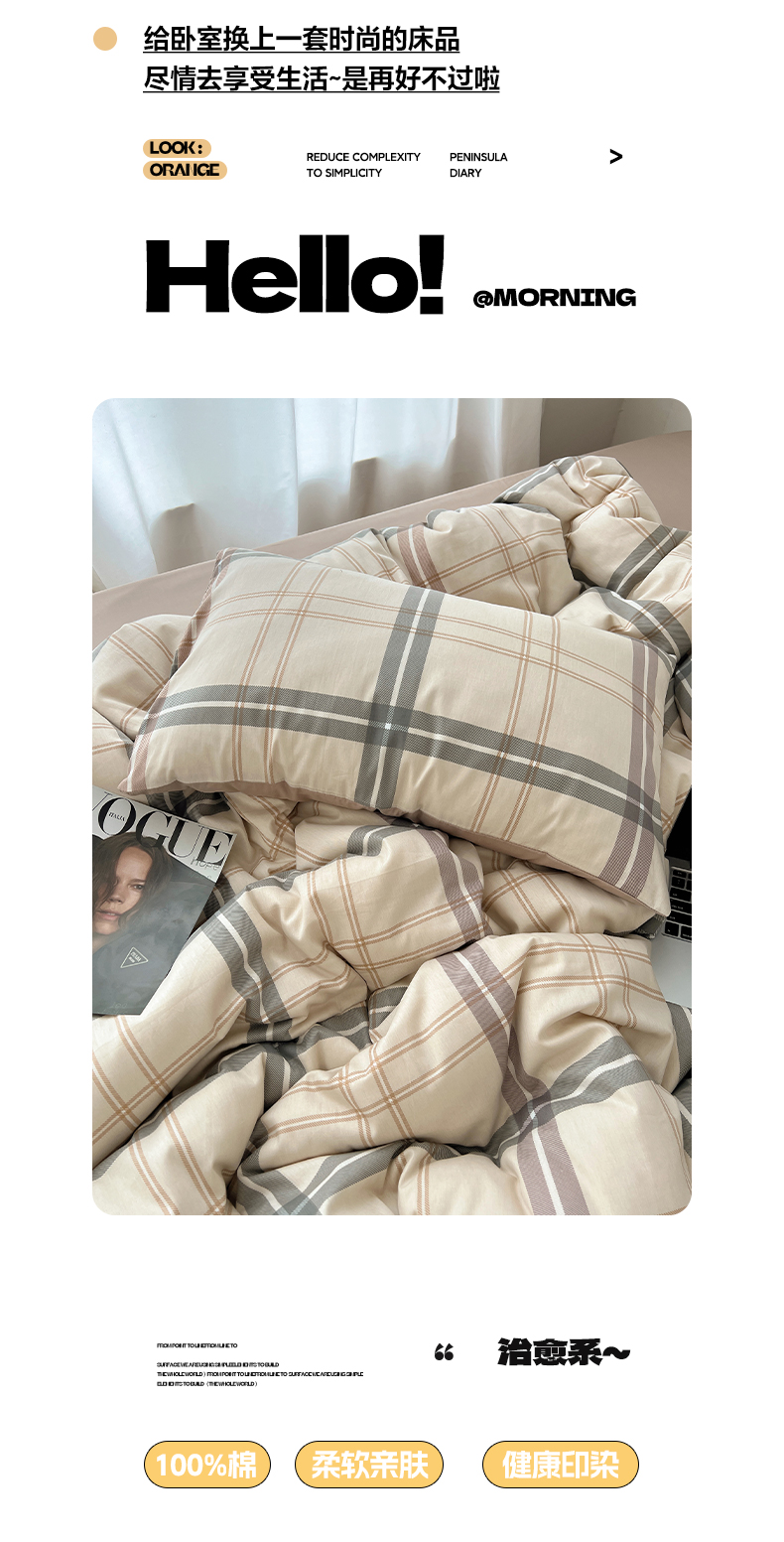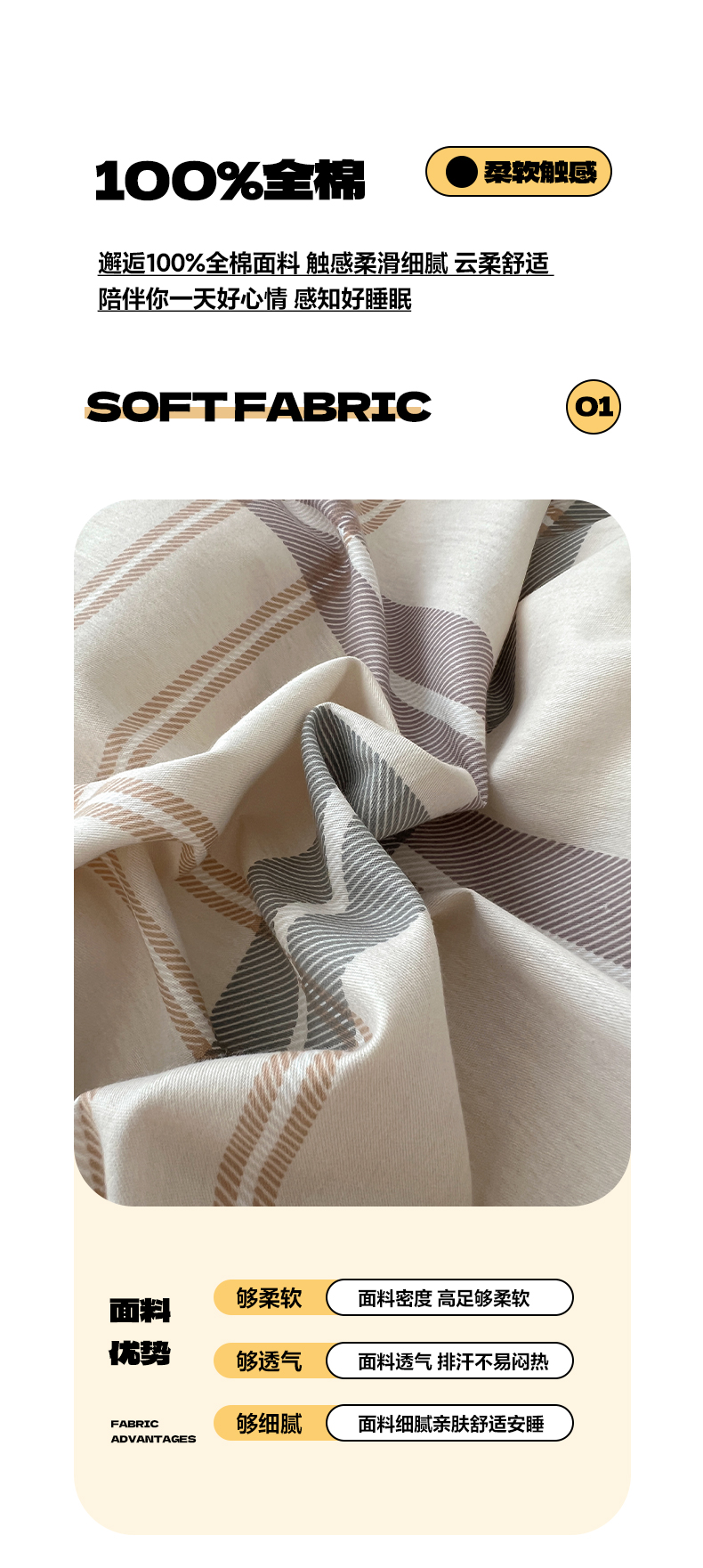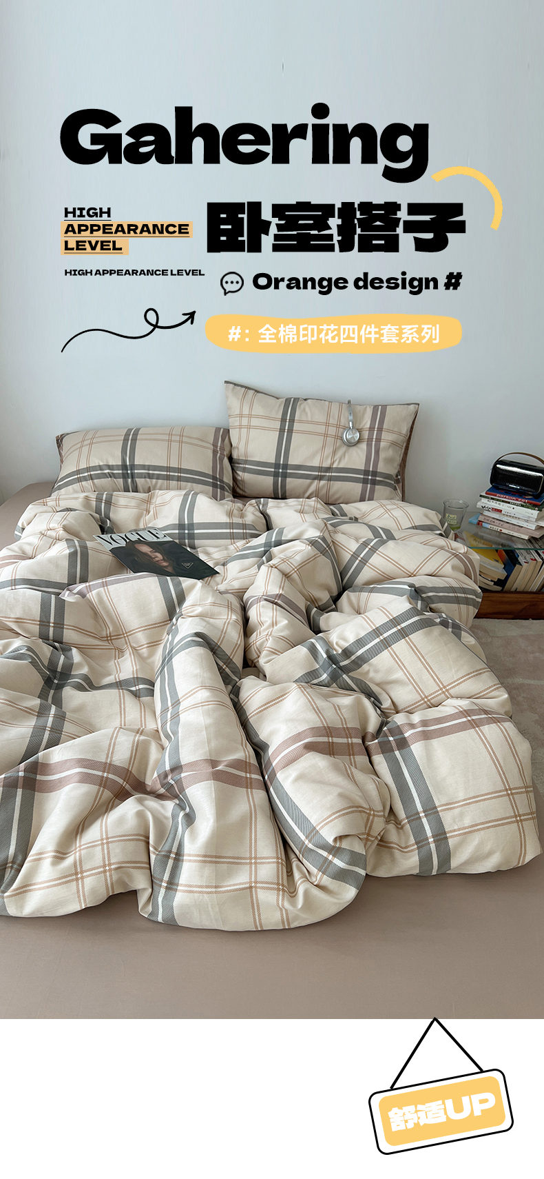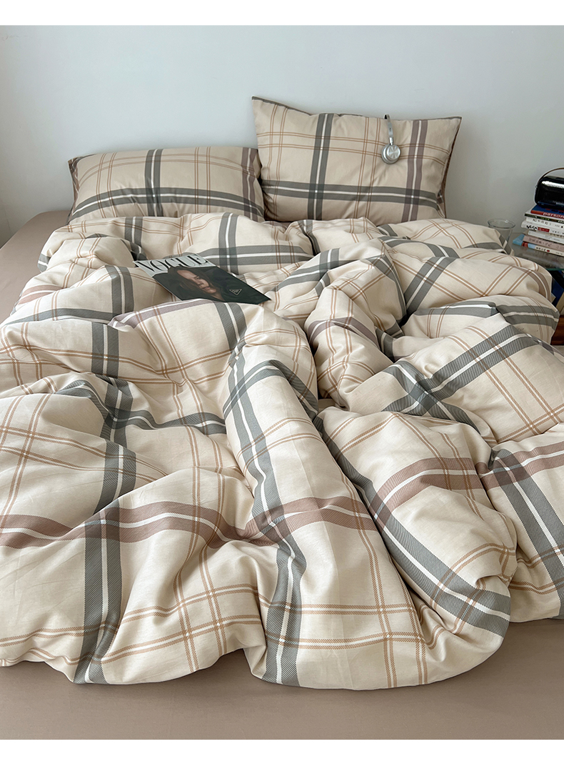 当前位置: 91家纺网 > 商品网购 > 床品套件 > 四件套 > 全棉普通四件套 > 雅居纺家纺 2025春夏新款全棉纯棉印花四件套 复古卡其格