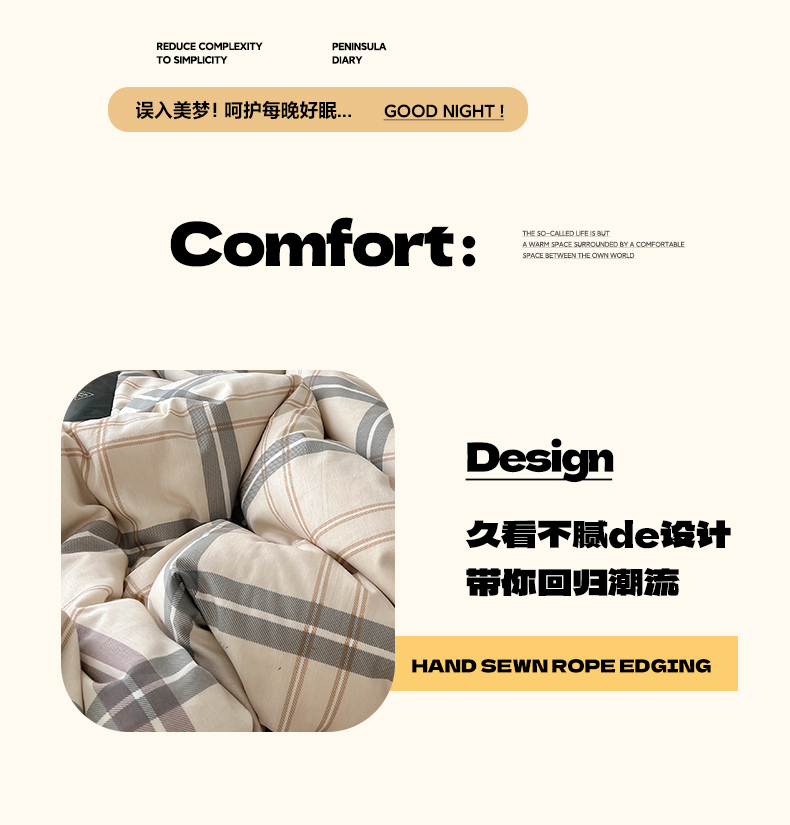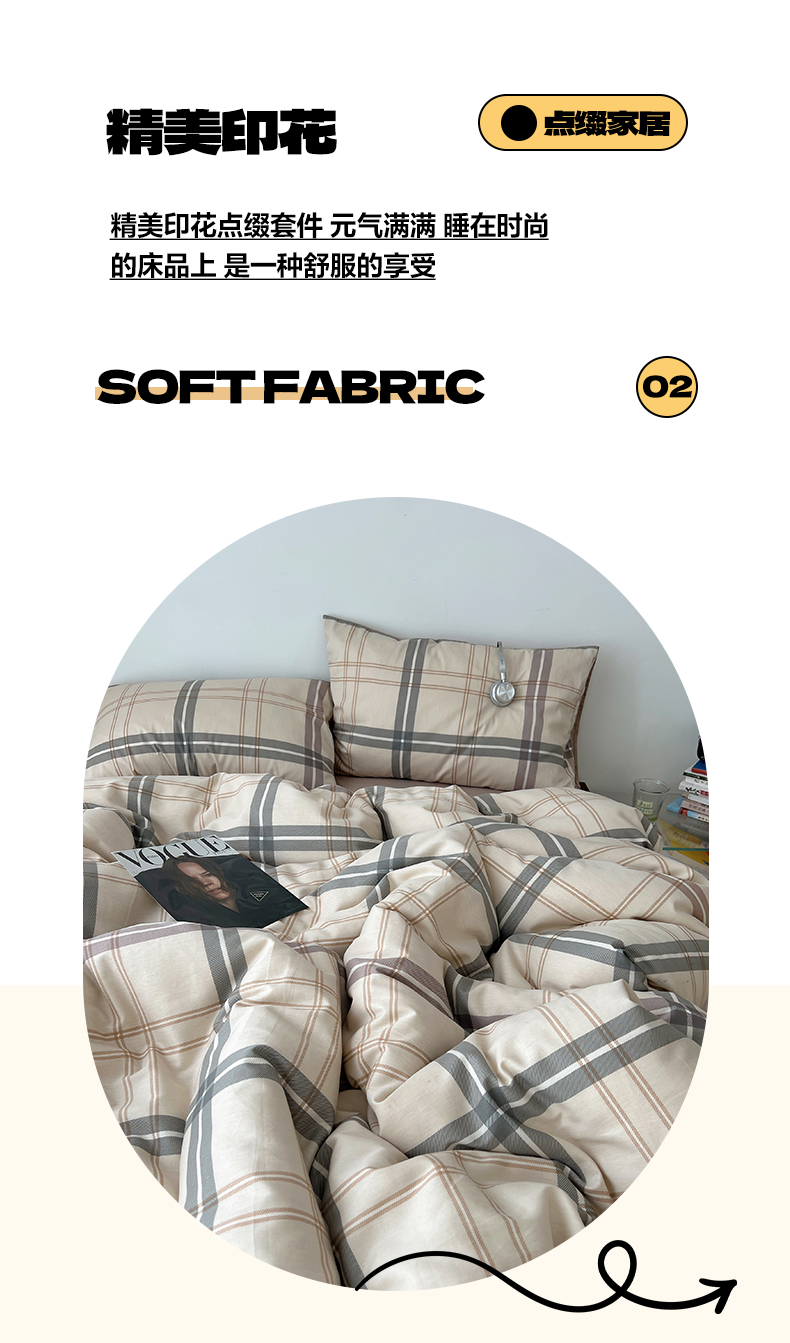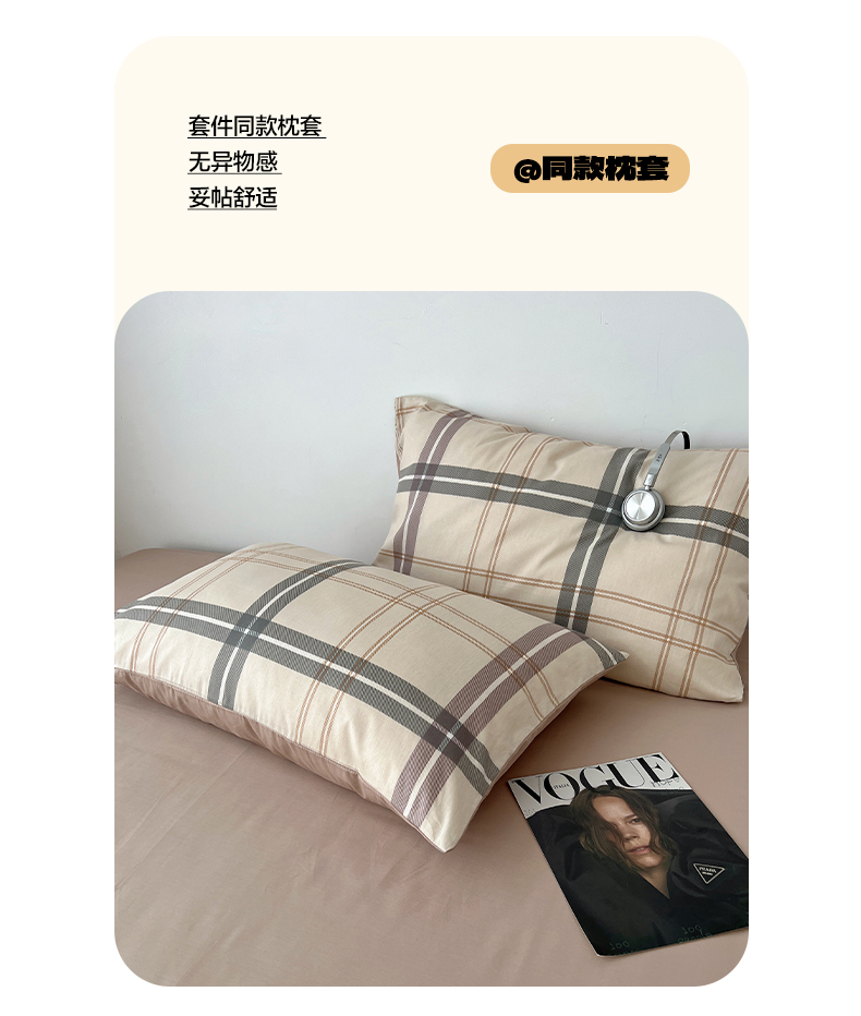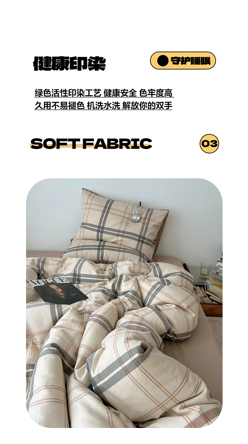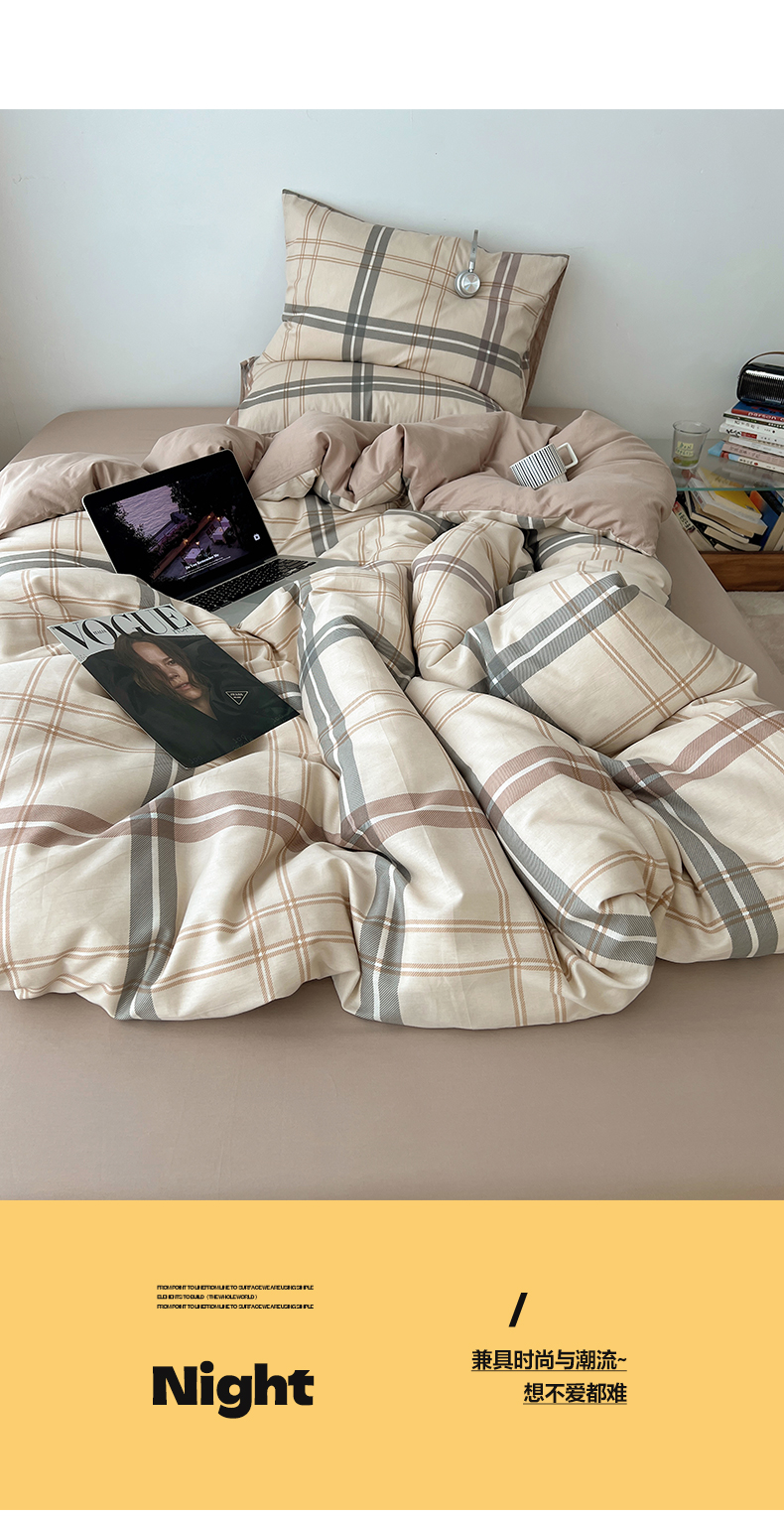 当前位置: 91家纺网 > 商品网购 > 床品套件 > 四件套 > 全棉普通四件套 > 雅居纺家纺 2025春夏新款全棉纯棉印花四件套 复古卡其格
