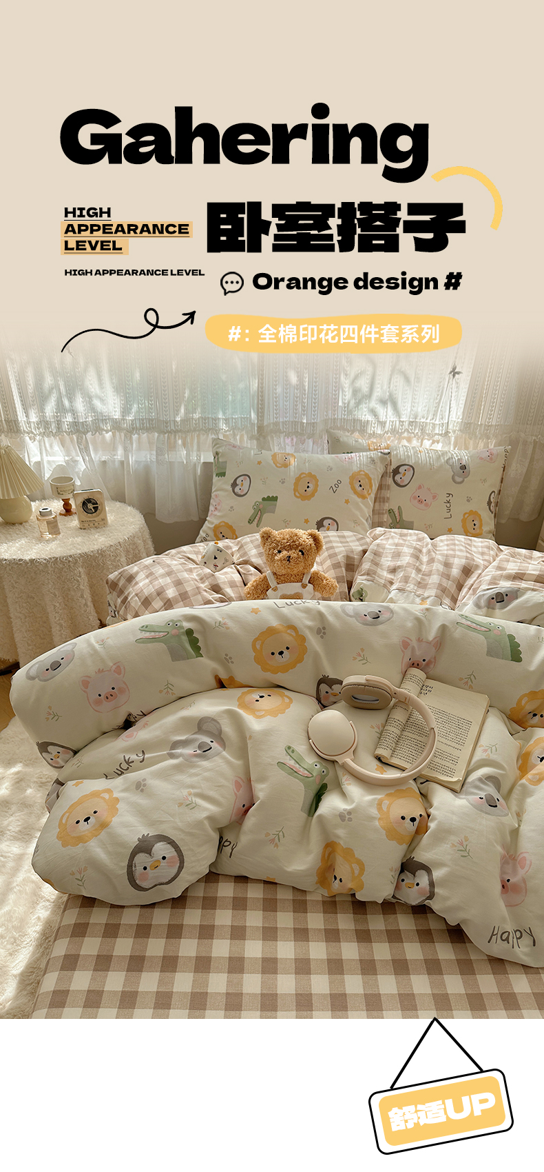 当前位置: 91家纺网 > 商品网购 > 床品套件 > 四件套 > 全棉普通四件套 > 雅居纺家纺 2025春夏新款全棉纯棉印花四件套 乐园