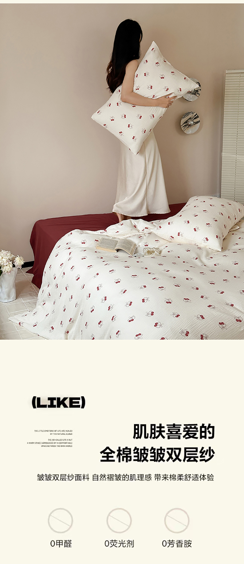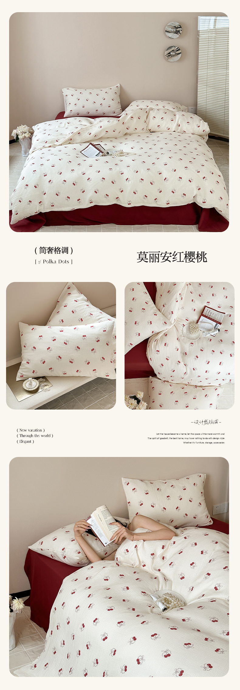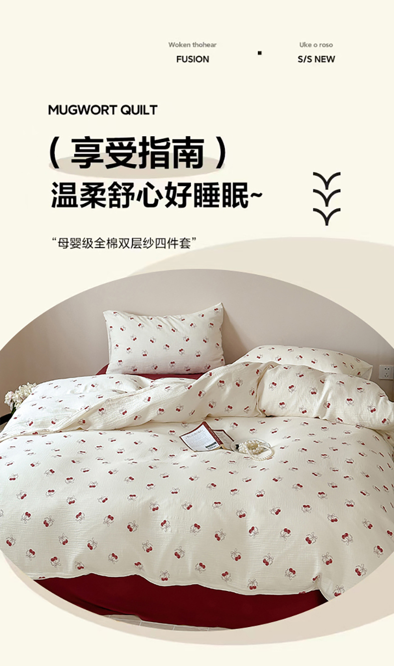 当前位置: 91家纺网 > 商品网购 > 床品套件 > 四件套 > 双层纱四件套 > 山舍2025新款皱皱双层纱四件套 莫丽安红樱桃