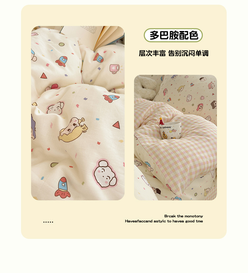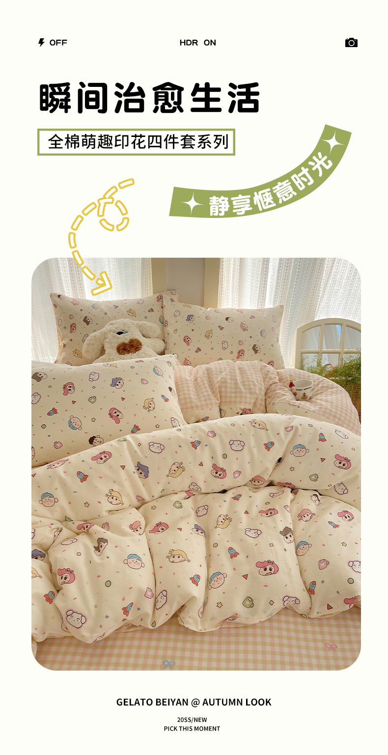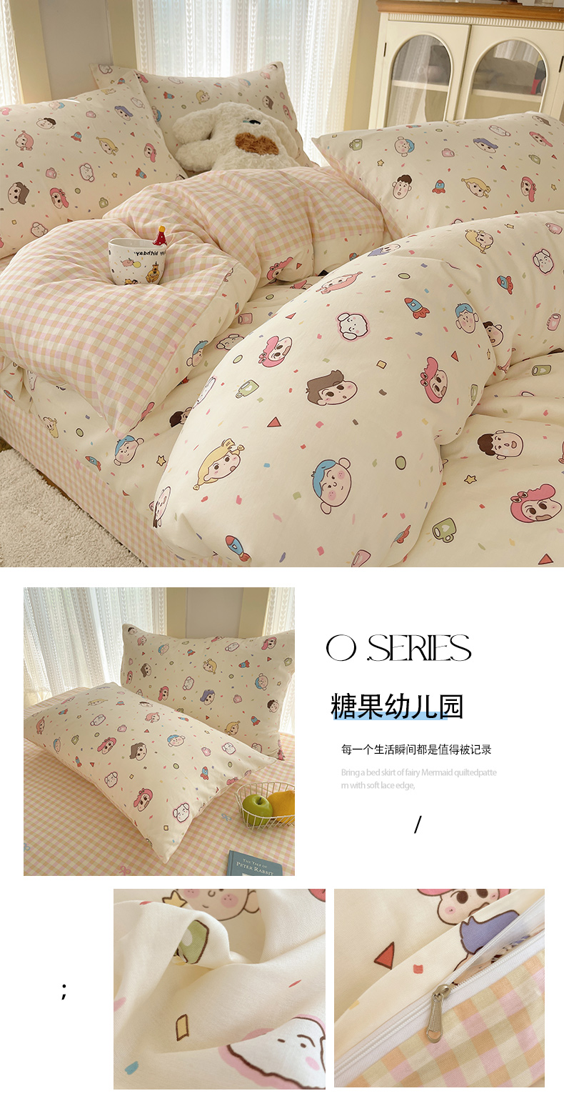 当前位置: 91家纺网 > 商品网购 > 床品套件 > 四件套 > 全棉普通四件套 > 瑞莱 2025新款开学季全棉纯棉萌趣印花四件套 糖果幼儿园