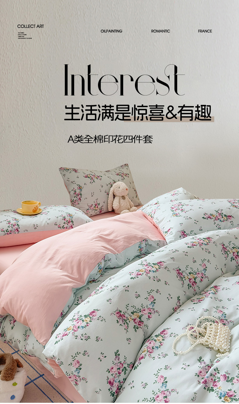 当前位置: 91家纺网 > 商品网购 > 床品套件 > 四件套 > 全棉普通四件套 > 恒爱家纺2025新款A类全棉印花四件套 若初