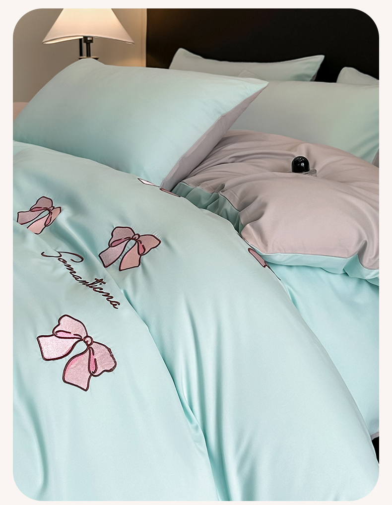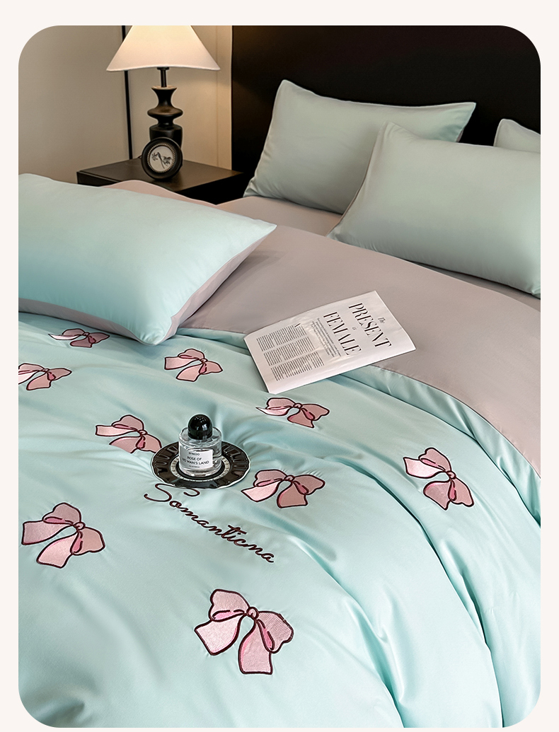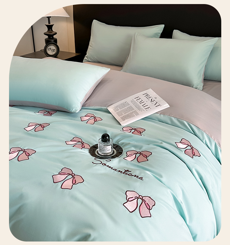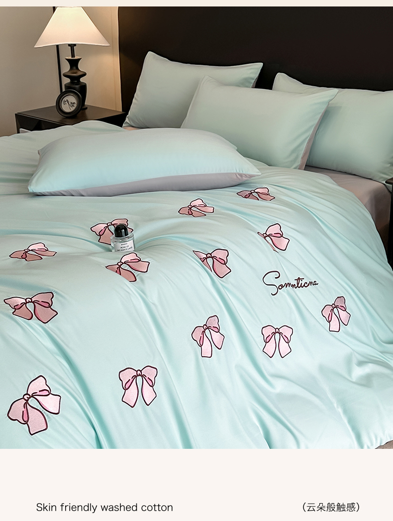 当前位置: 91家纺网 > 商品网购 > 床品套件 > 四件套 > 水洗棉四件套 > 笙意家纺 2025新款亲肤水洗棉刺绣满绣四件套 蝴蝶结-繁星兰+山灰
