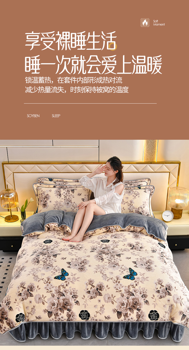 (总)缘莉娜家纺 2025高克重8斤牛奶绒四件套金貂绒法莱绒加厚保暖直播电商爆款,蝶恋花,萌牛牛,布偶喵,萌萌熊,金叶满堂,家和万事兴,兔兔乐园,甜蜜蜜,如花似锦,幸福花间,一路相伴,浪漫花都,玫瑰的故事,致青春,花韵,甜心派,海阔天空,人生格言,梦想花园,时尚主义,百福吉祥,辉煌人生,抱抱熊,留恋树,万象之旅,花样年华,喜结良缘,红粉佳人,鹿上时空,杏运连连,爱恋,美好时光,多彩生活,灿烂时光,曼妙顺意,翩翩起舞,繁花有幸,灰色,酒红,玫红,苹果绿,浅驼色,深蓝,紫色