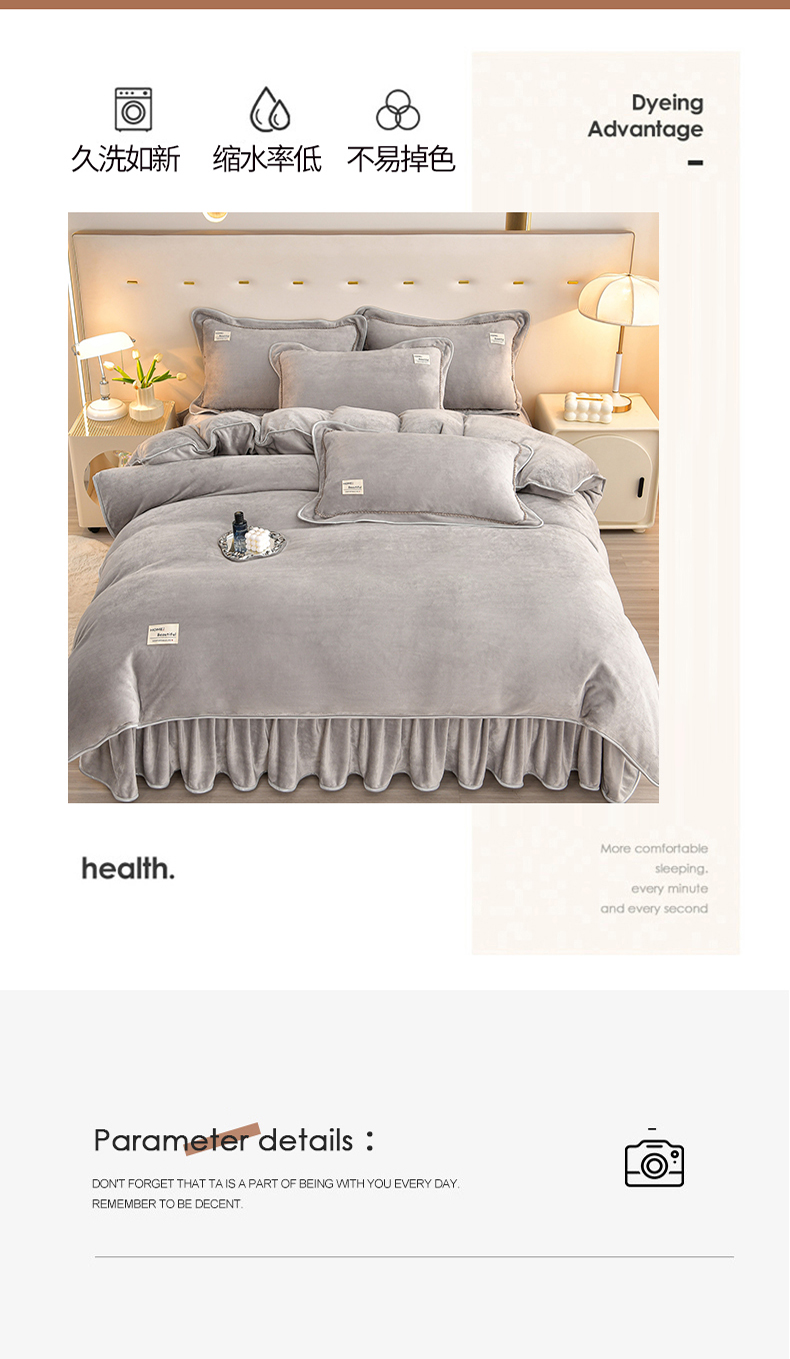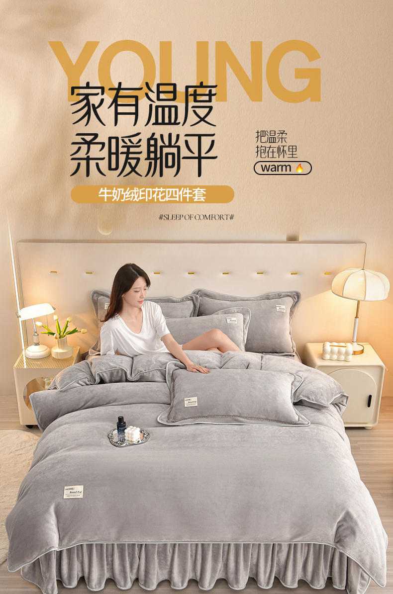缘莉娜家纺 2025高克重8斤牛奶绒四件套金貂绒法莱绒加厚保暖直播电商爆款 灰色