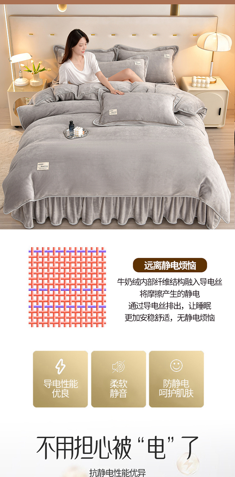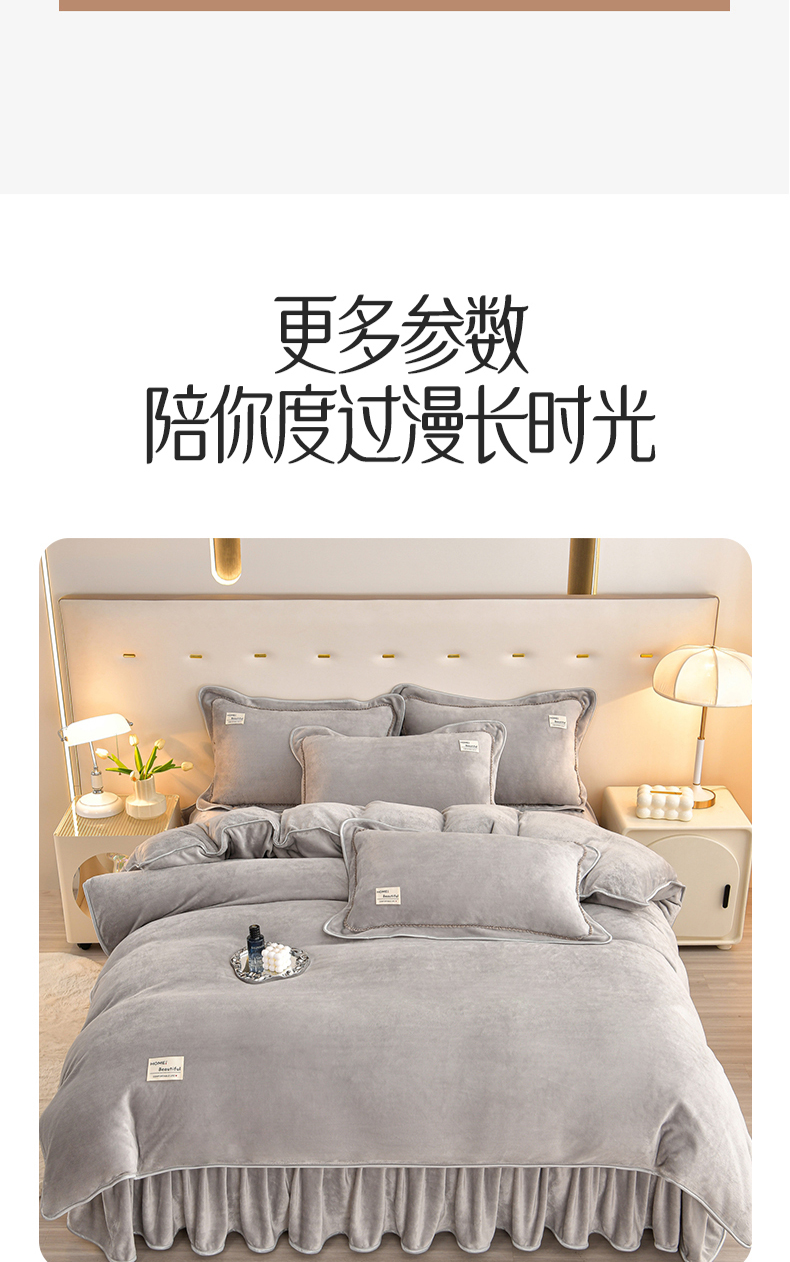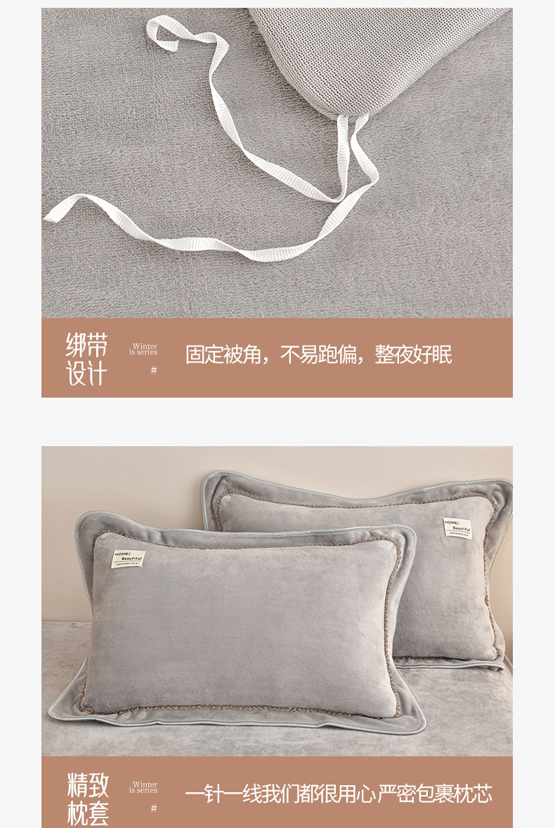 商品名称:缘莉娜家纺 2025高克重8斤牛奶绒四件套金貂绒法莱绒加厚保暖直播电商爆款 灰色